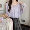 Chaqueta tipo cárdigan de seda blanca con protección solar, fina, de cintura pequeña, para mujer, con chal de verano y falda con tirantes, blusa exterior