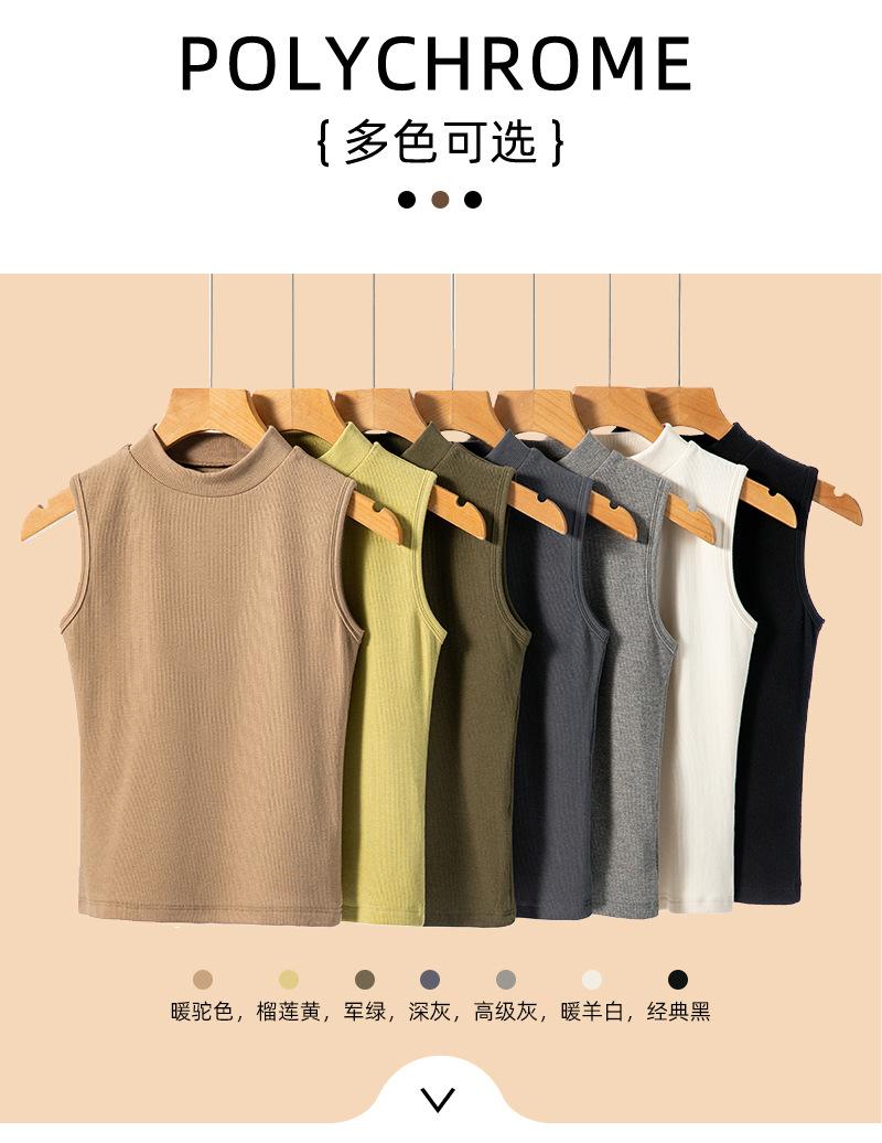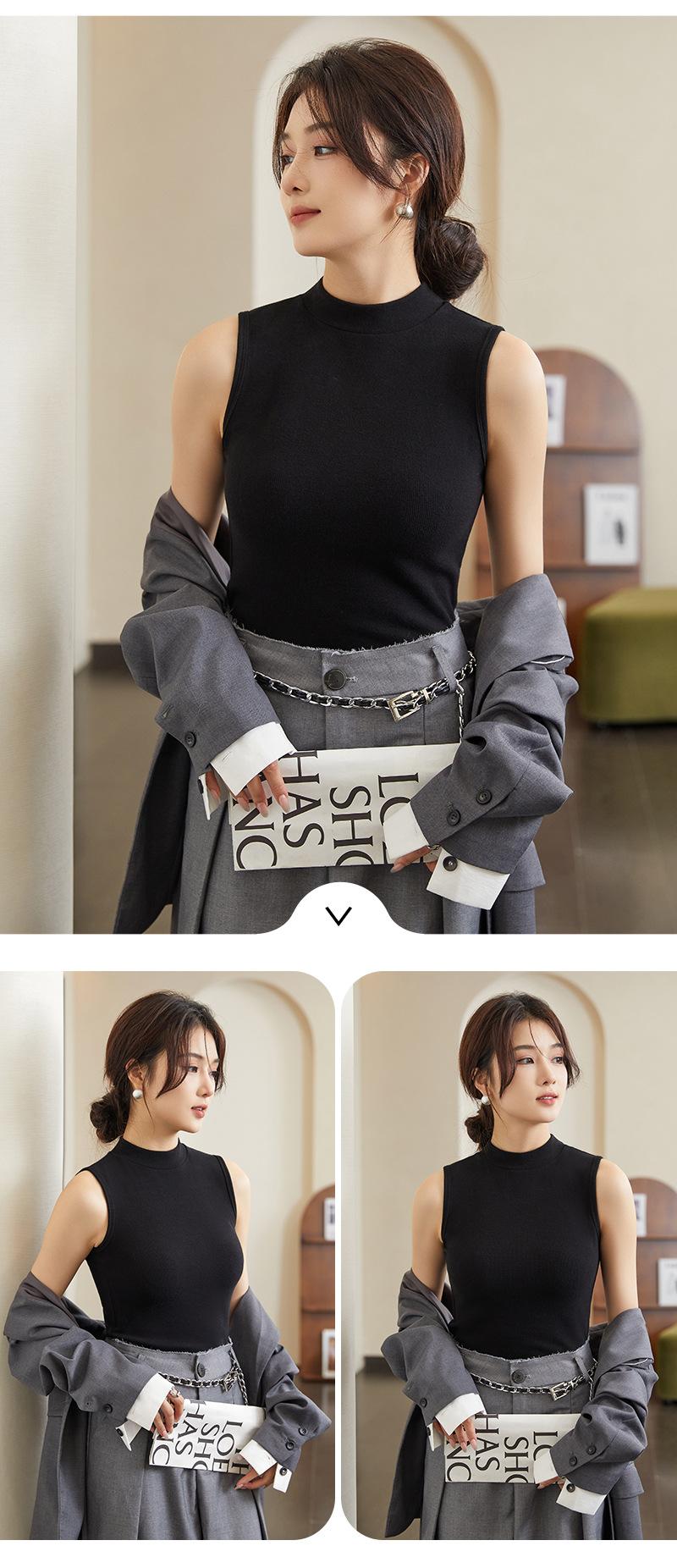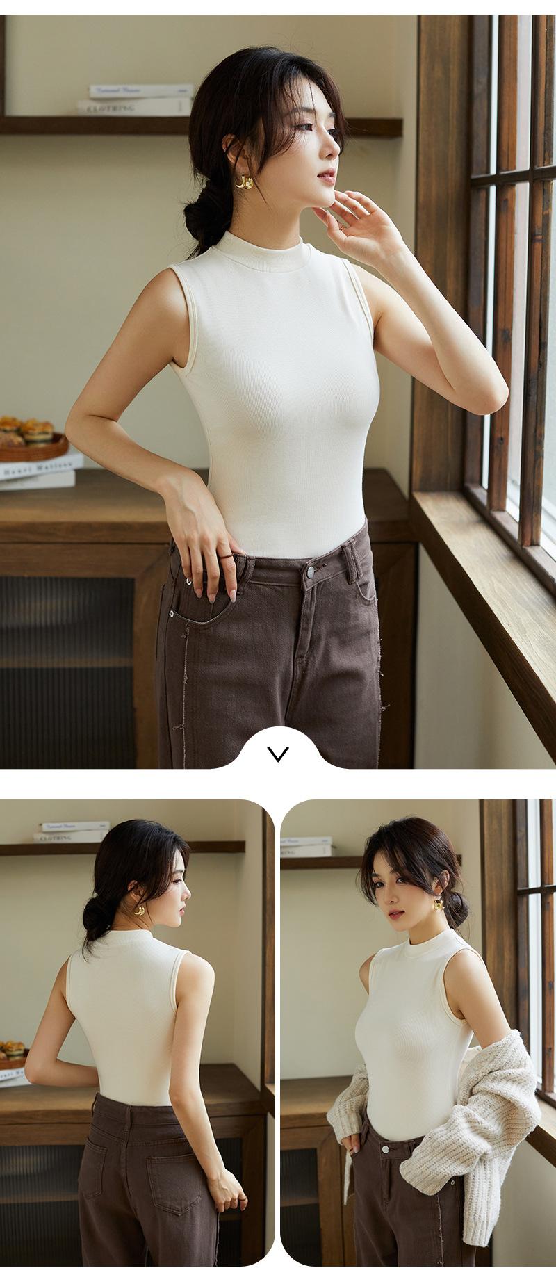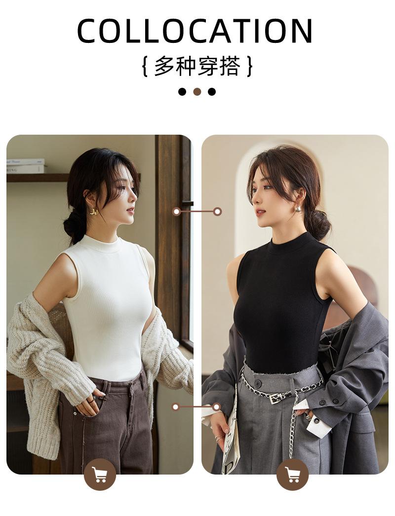 Chaleco de fondo para mujer, ropa exterior de otoño e invierno, camiseta adelgazante de cuello alto medio sin mangas, chaleco interior de punto con tirantes pequeños de algodón