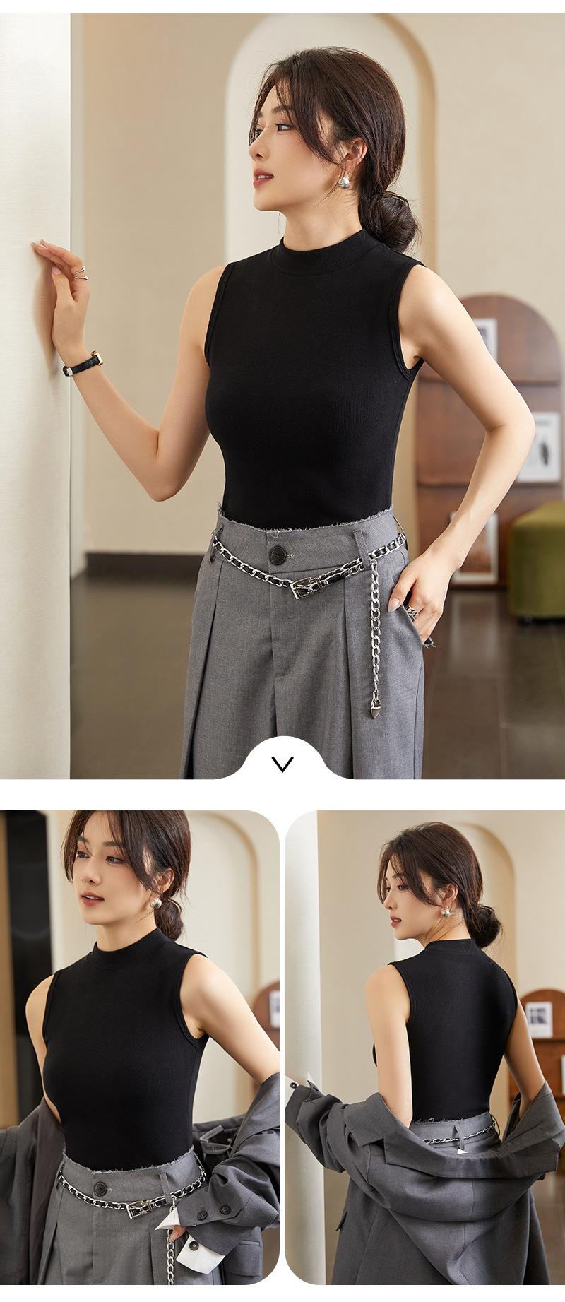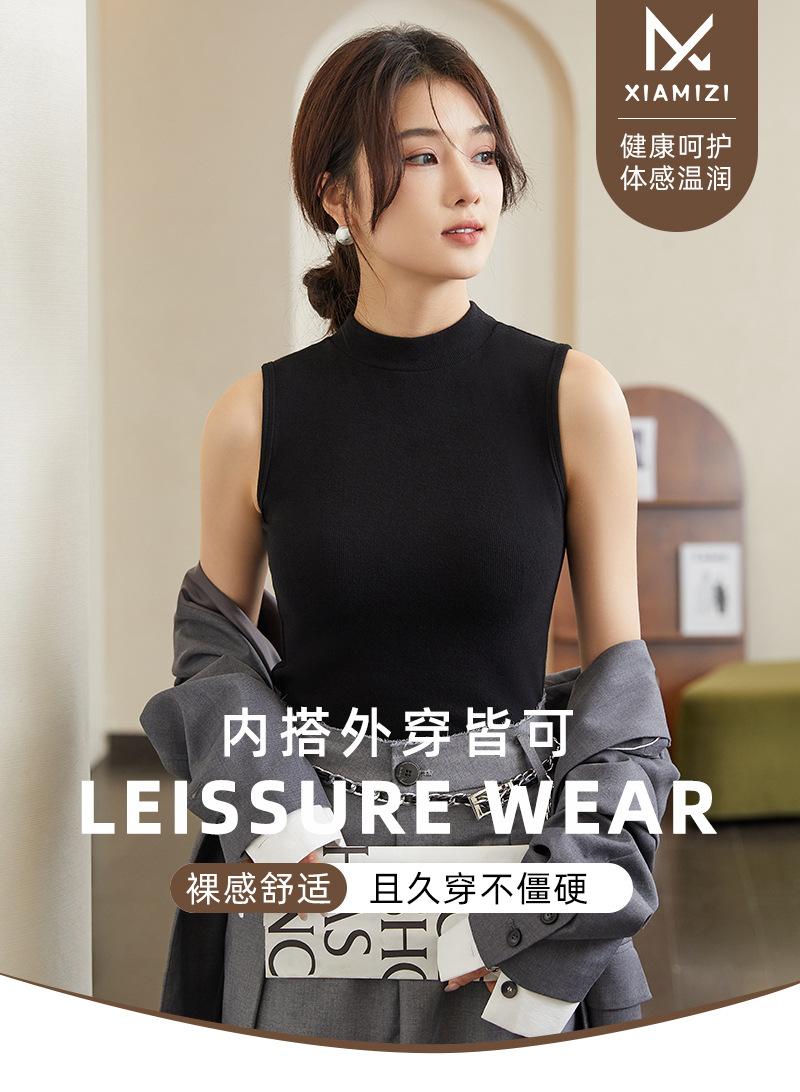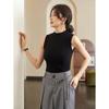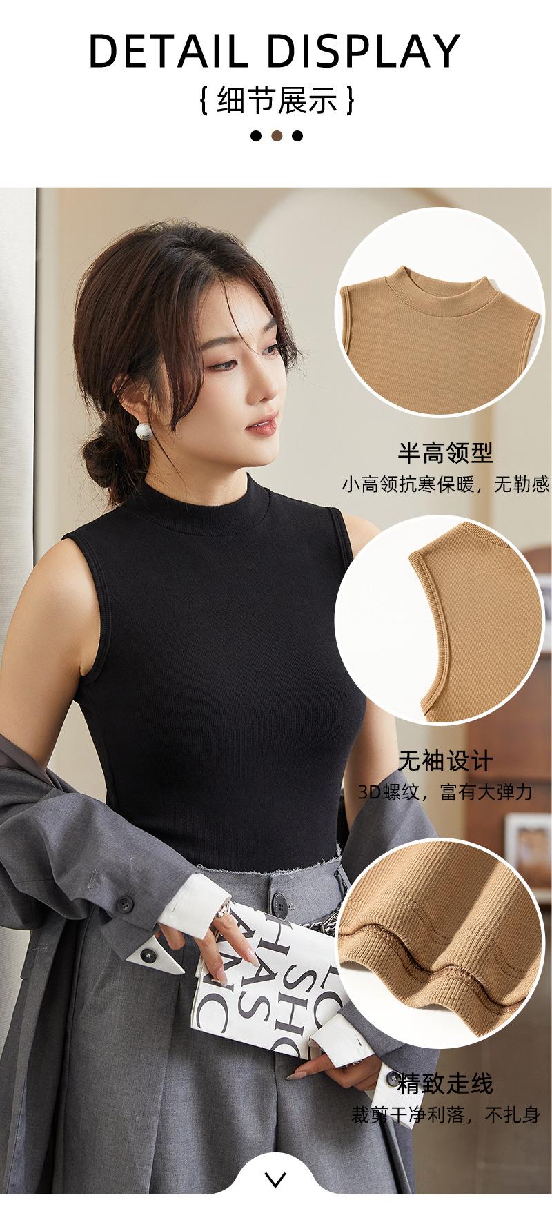 Chaleco de fondo para mujer, ropa exterior de otoño e invierno, camiseta adelgazante de cuello alto medio sin mangas, chaleco interior de punto con tirantes pequeños de algodón
