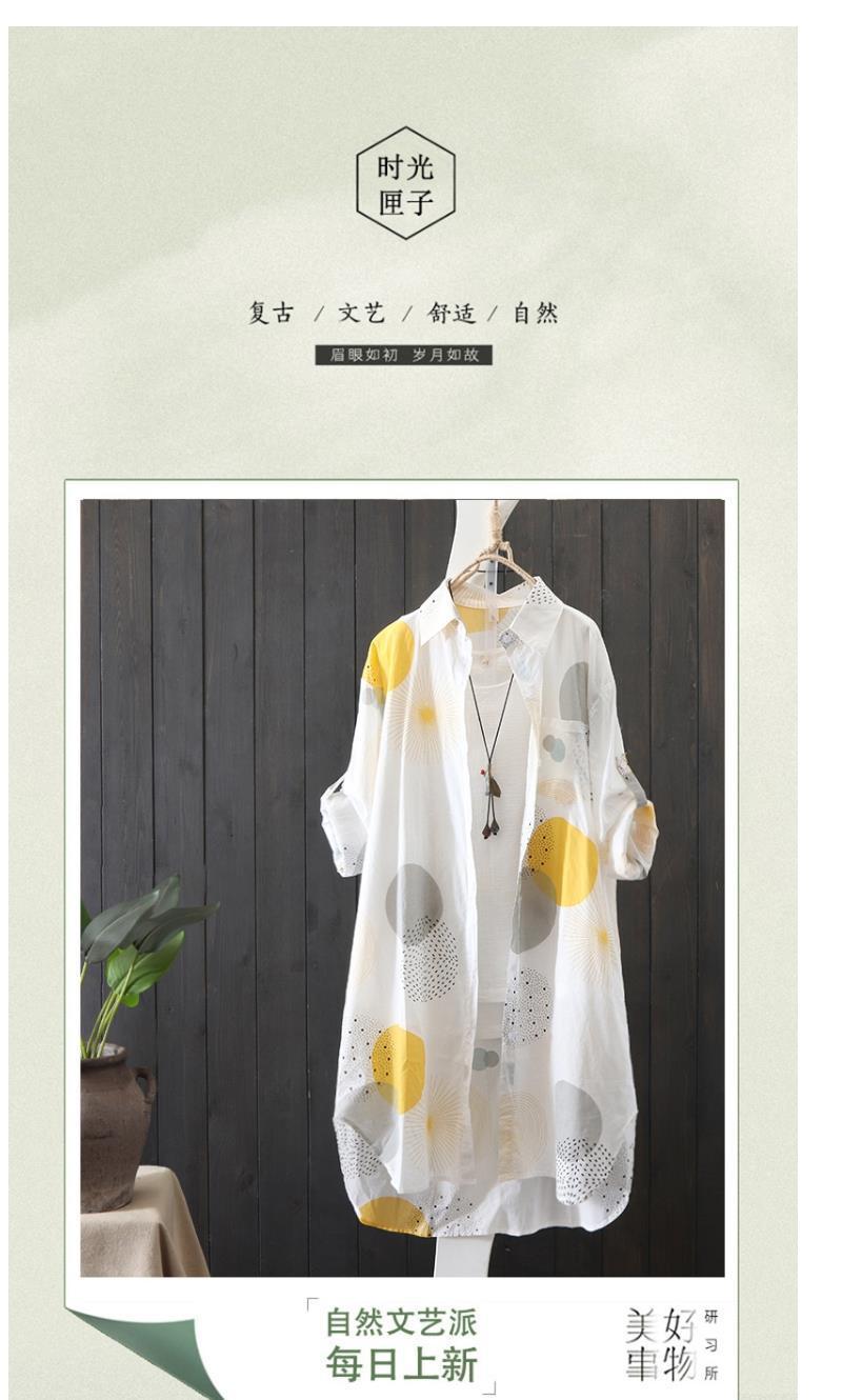 Camisa larga estampada, ropa de protección solar de gasa para mujer, ropa fina de verano para mujer, nueva ropa de protección solar suelta, cárdigan de mujer, abrigo fino