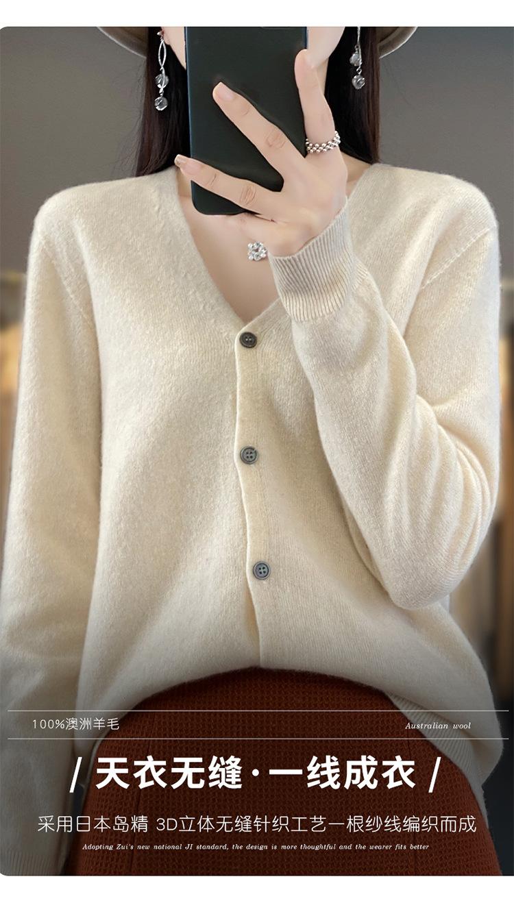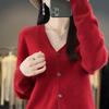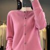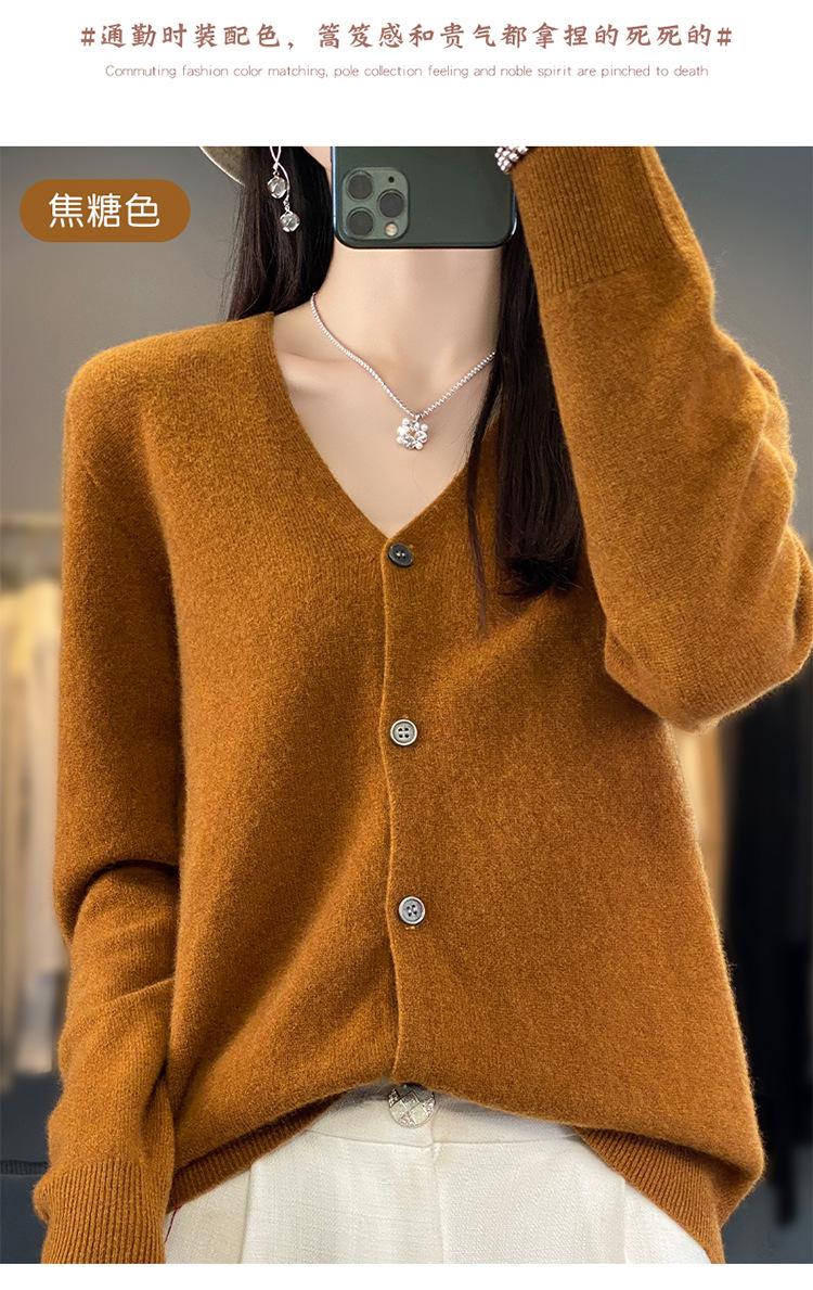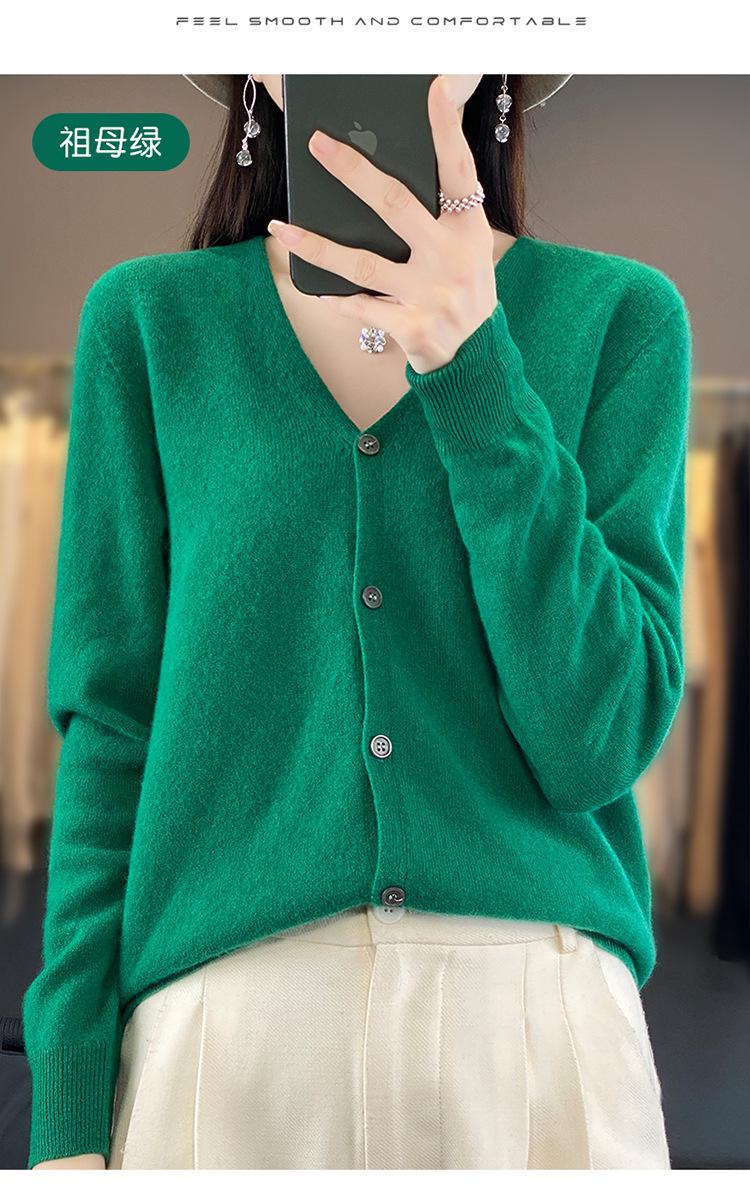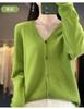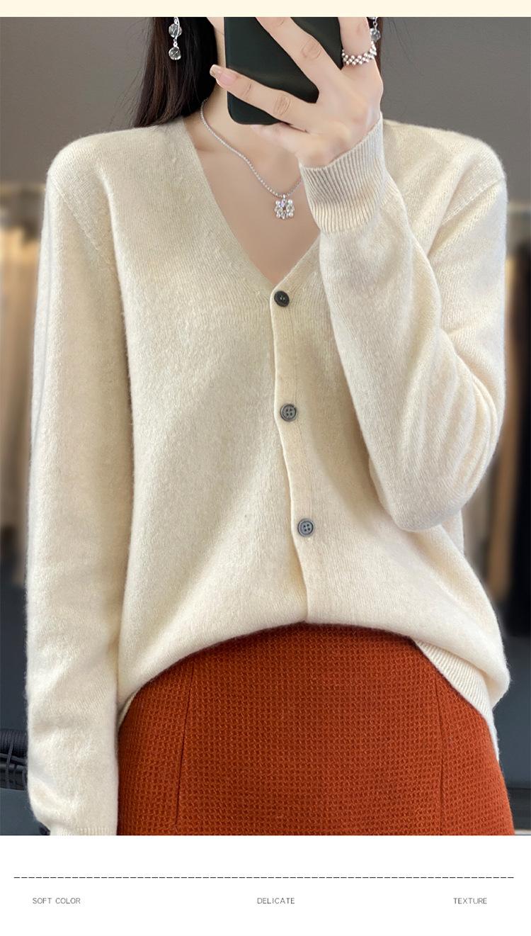 Cárdigan de lana de primera línea para mujer, cuello en V, suelto, sencillo, de punto, para primavera y otoño, color liso, manga larga, chaqueta sin cachemira