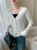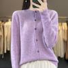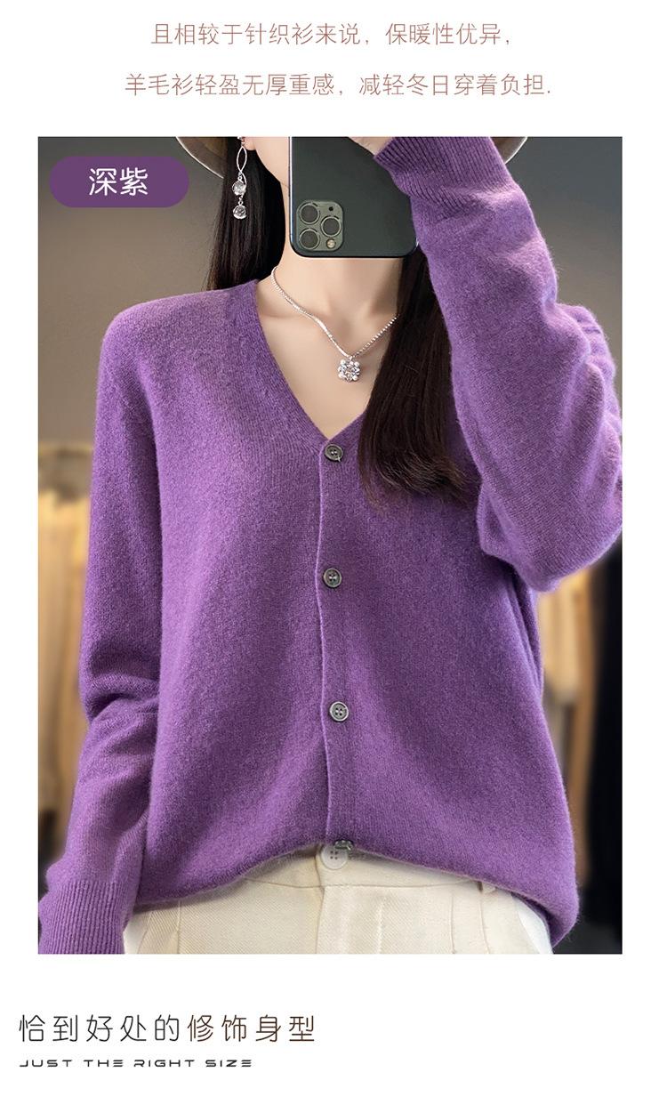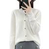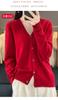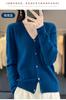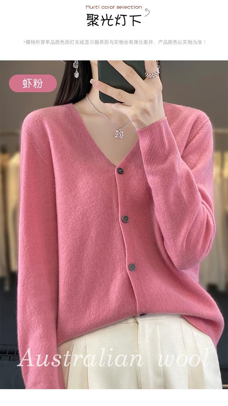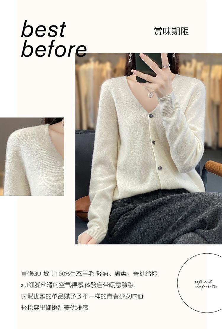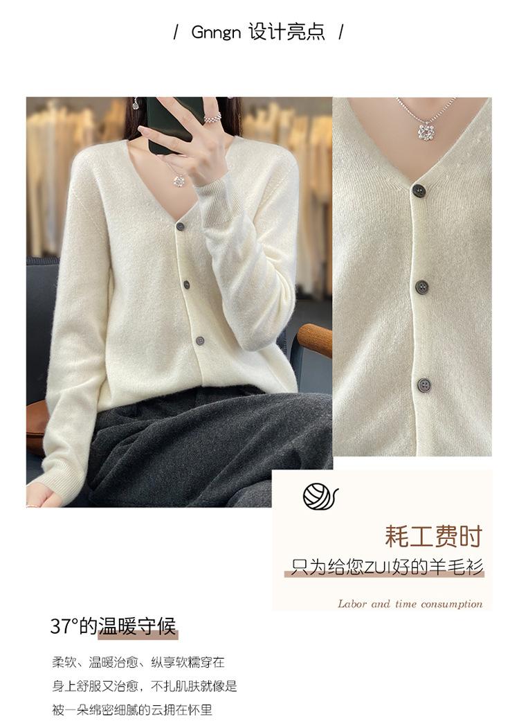 Cárdigan de lana de primera línea para mujer, cuello en V, suelto, sencillo, de punto, para primavera y otoño, color liso, manga larga, chaqueta sin cachemira