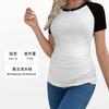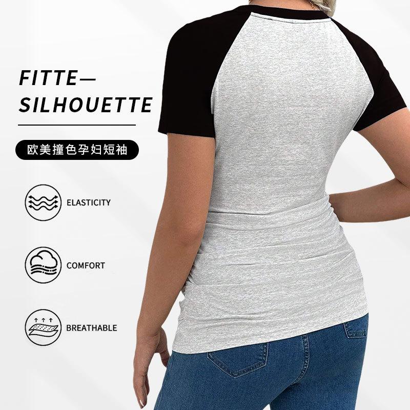 Camisetas de maternidad europeas y americanas con colores contrastantes, mangas cortas, blusas de maternidad modernas, informales, elásticas y ajustadas. Ropa de maternidad de Amazon.
