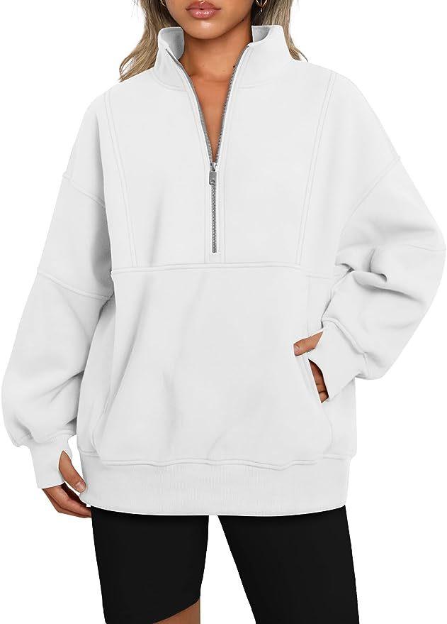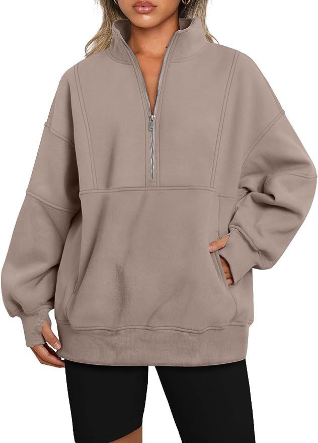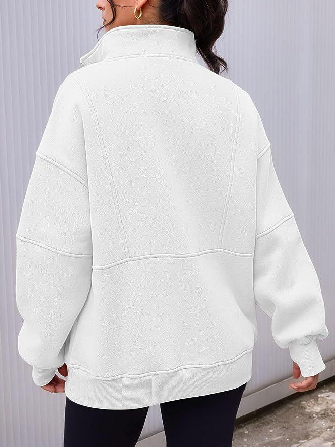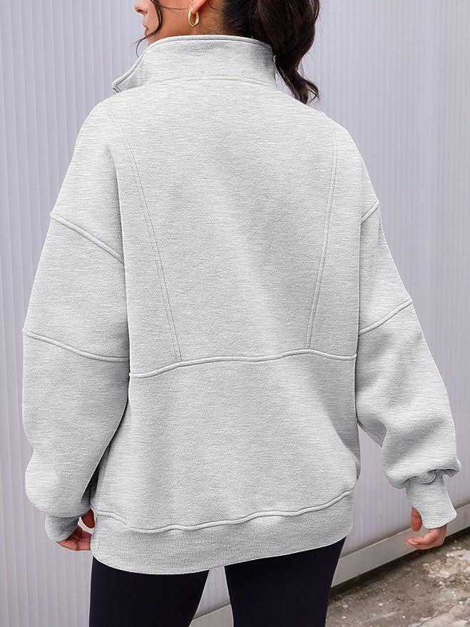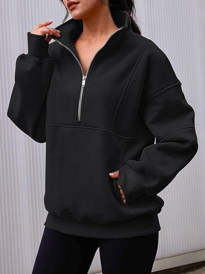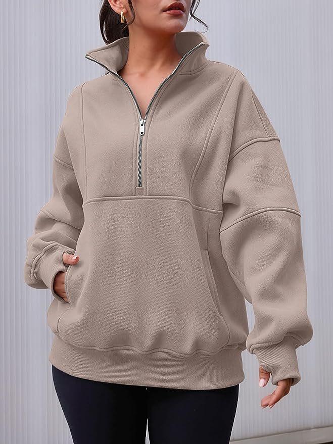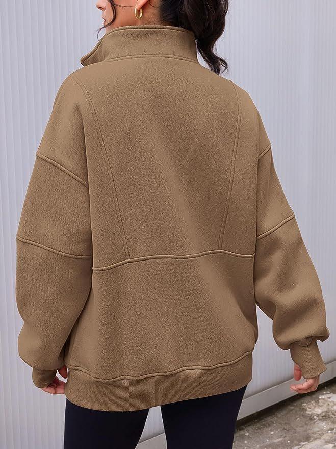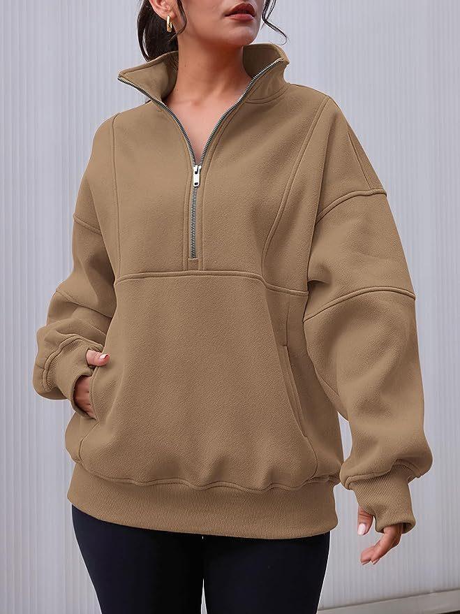 Suéter holgado informal con cuello alto y forro polar, con media cremallera y bolsillo para mujer de Amazon, Europa y América, 2023