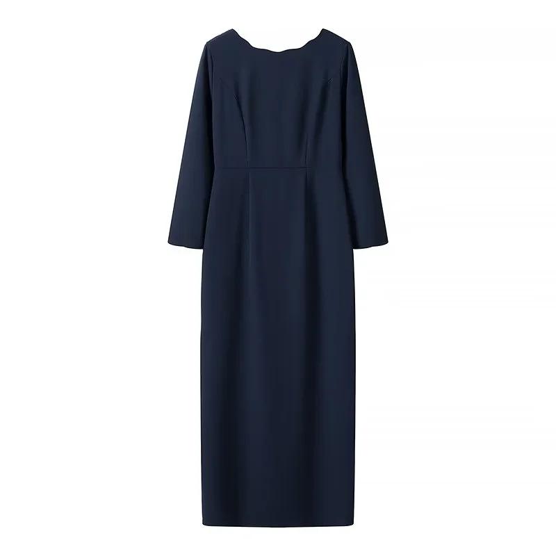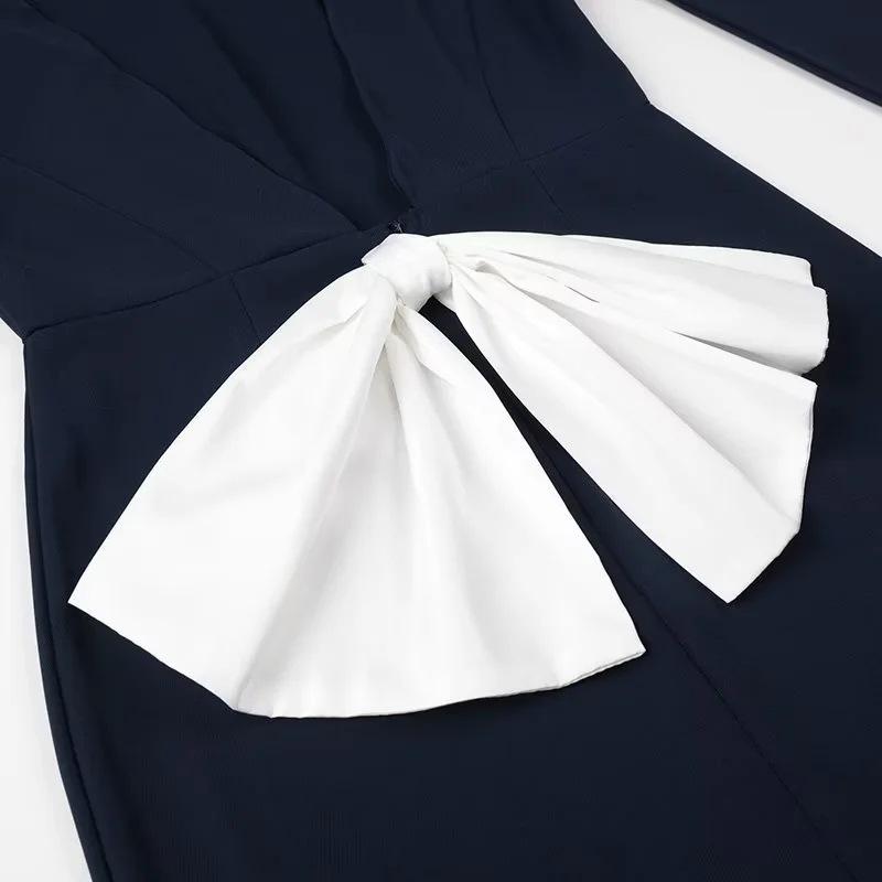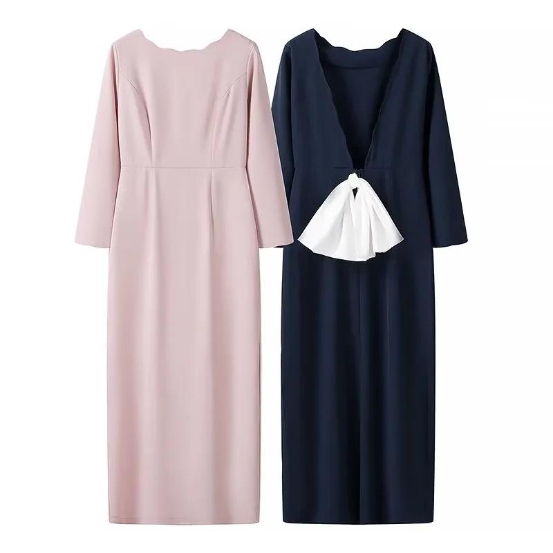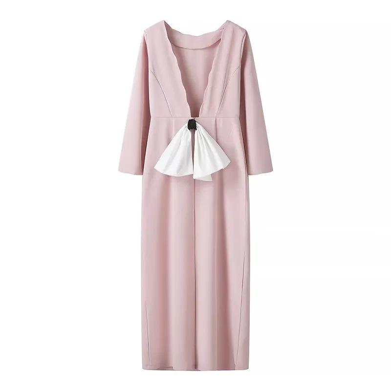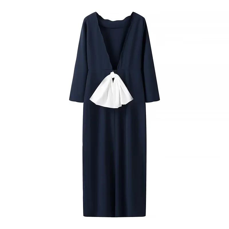 Ropa de Mujer de Exportación Europea y Americana al por Mayor 2024 Primavera Nuevo Vestido de Manga Larga con Cuello en V y Lazo Falda de un Paso de Cintura Media para Mujer