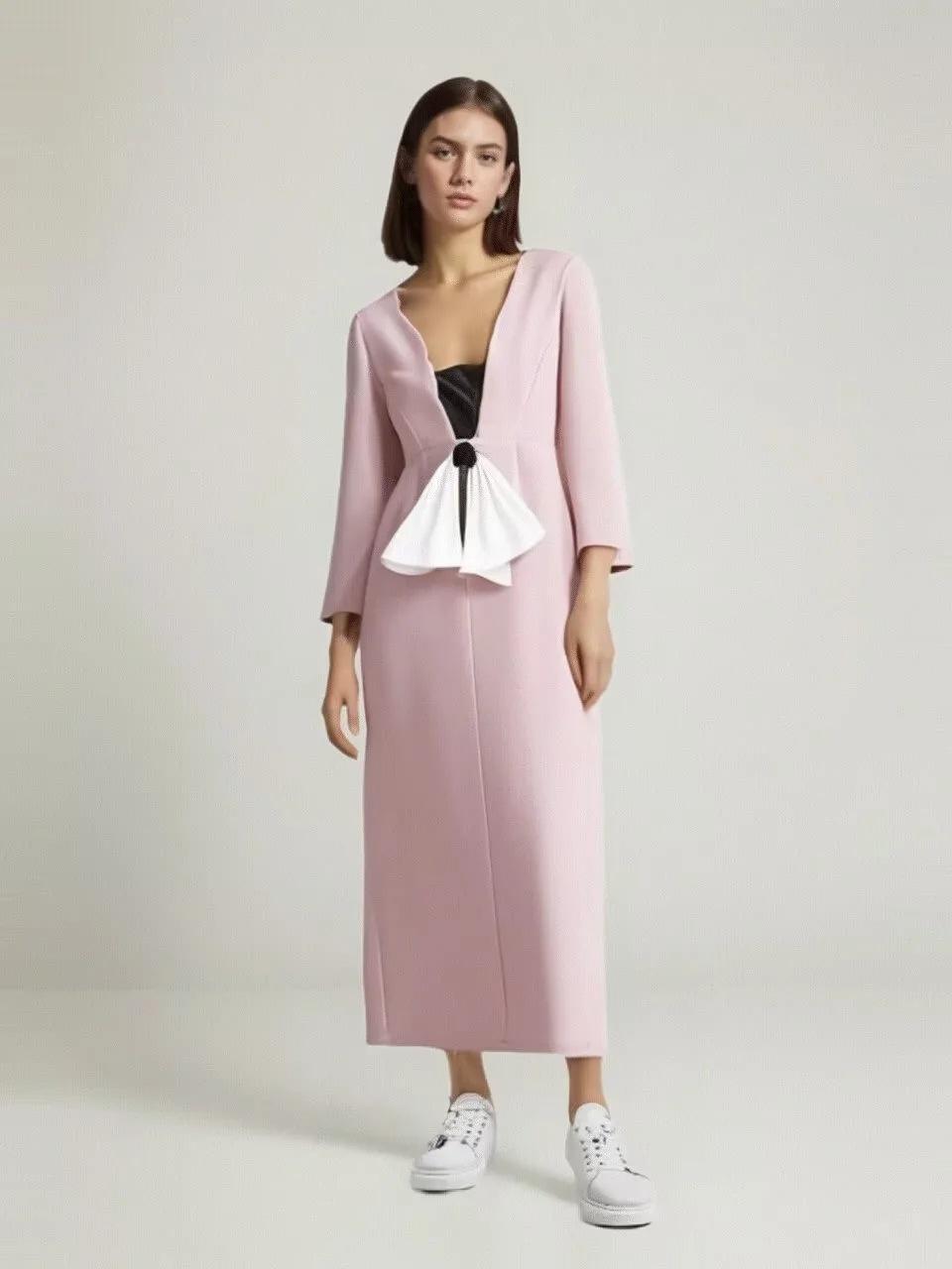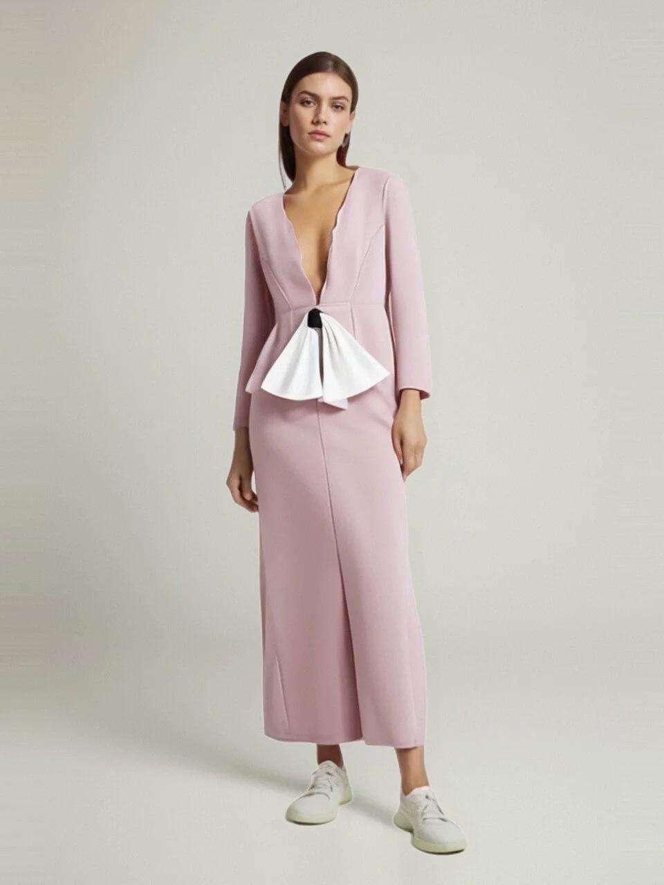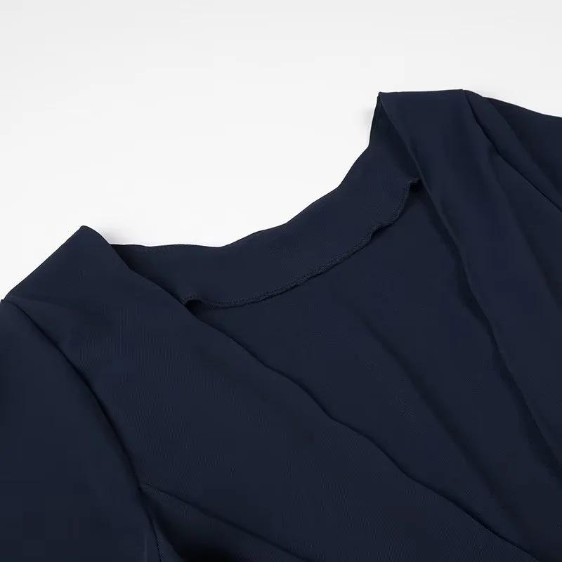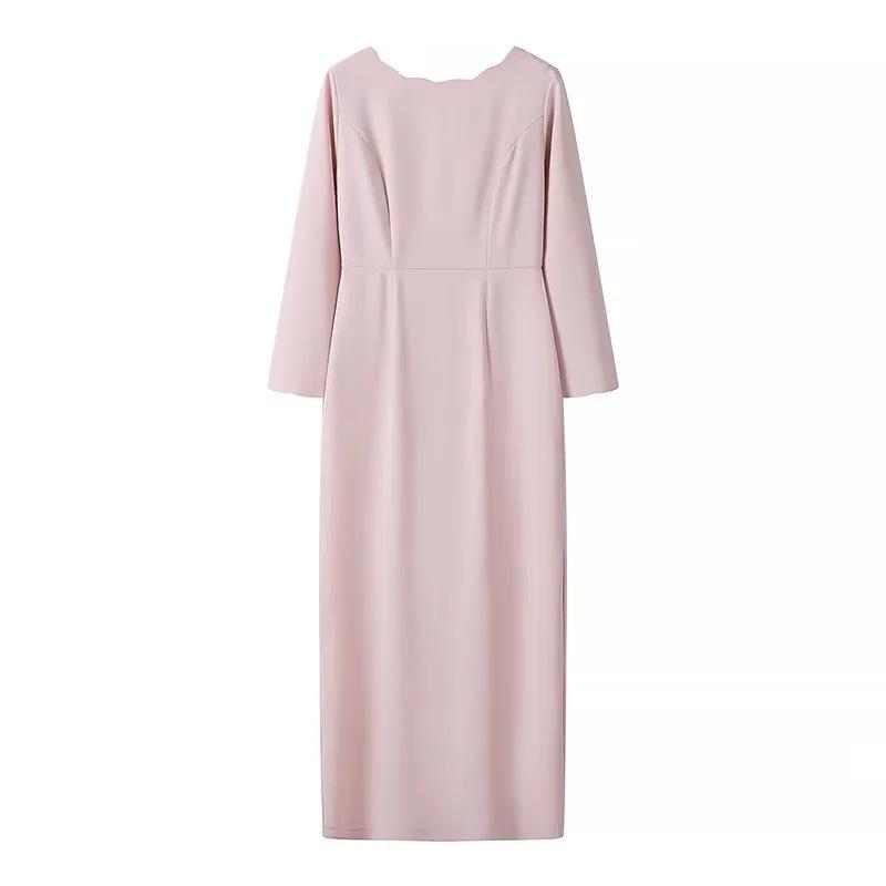 Ropa de Mujer de Exportación Europea y Americana al por Mayor 2024 Primavera Nuevo Vestido de Manga Larga con Cuello en V y Lazo Falda de un Paso de Cintura Media para Mujer