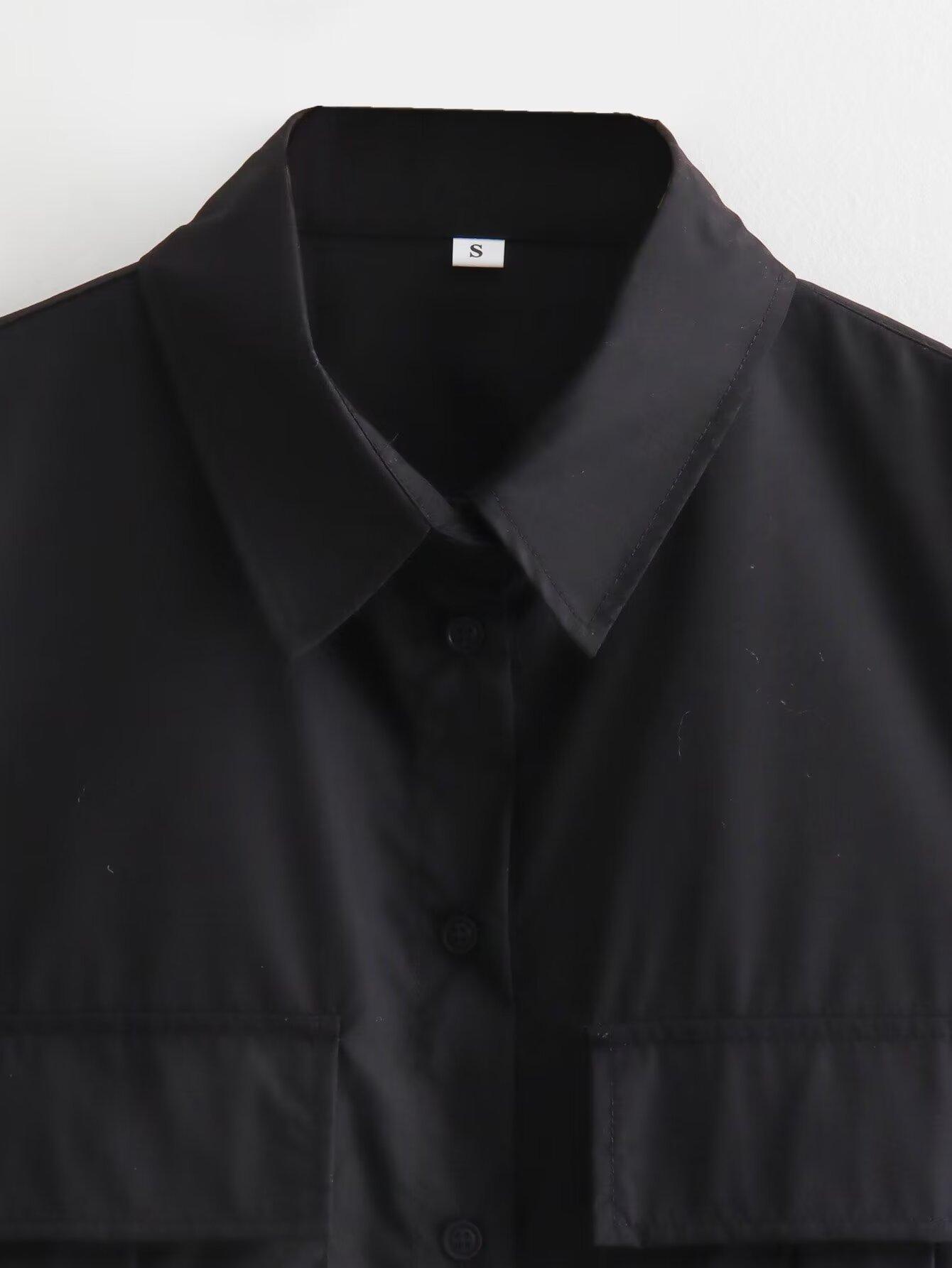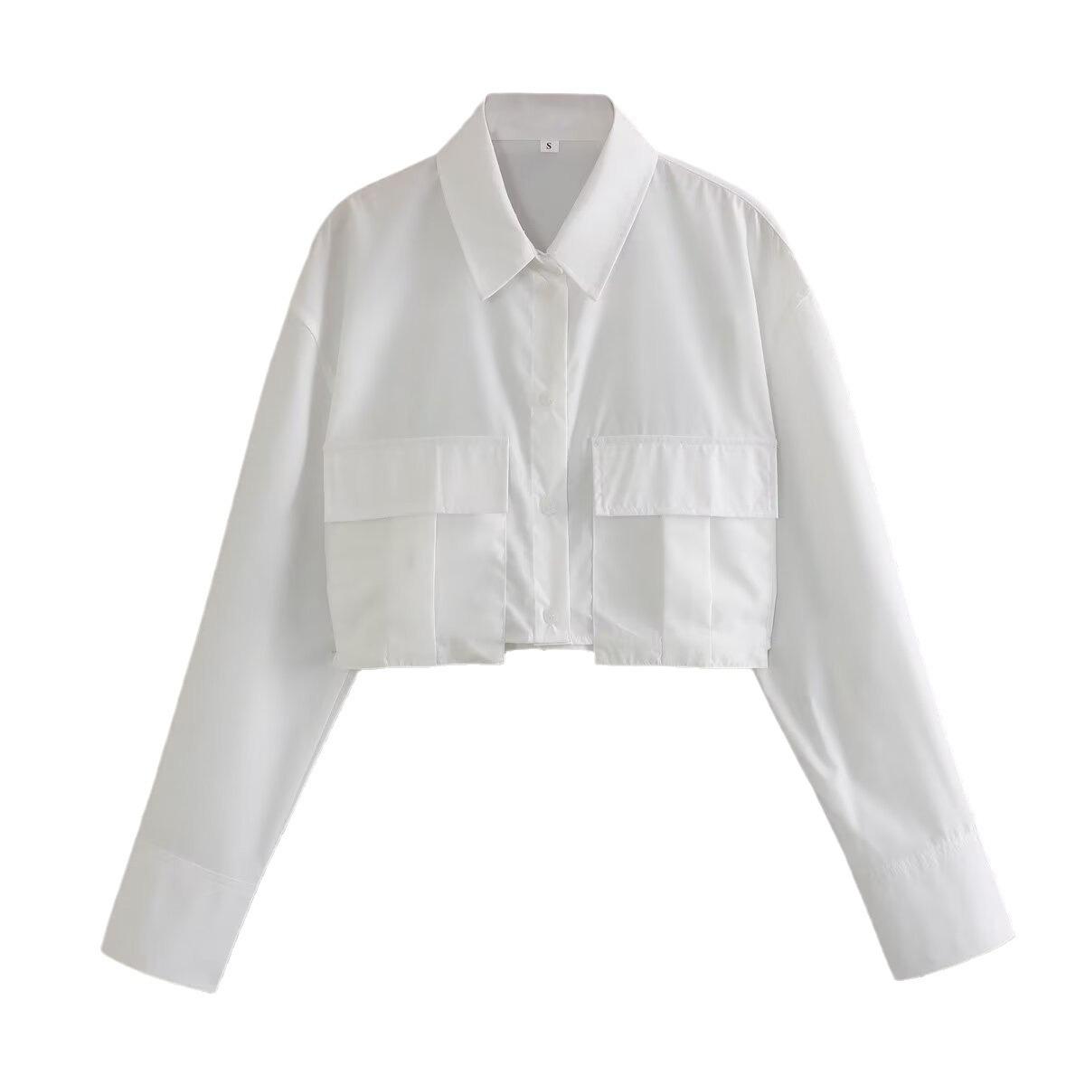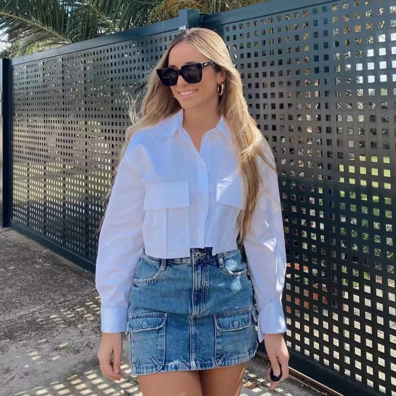 Transfronterizo 2024 Amazon ropa de mujer nueva simple combinable color sólido bolsillo camisa corta de mujer femenina A19890