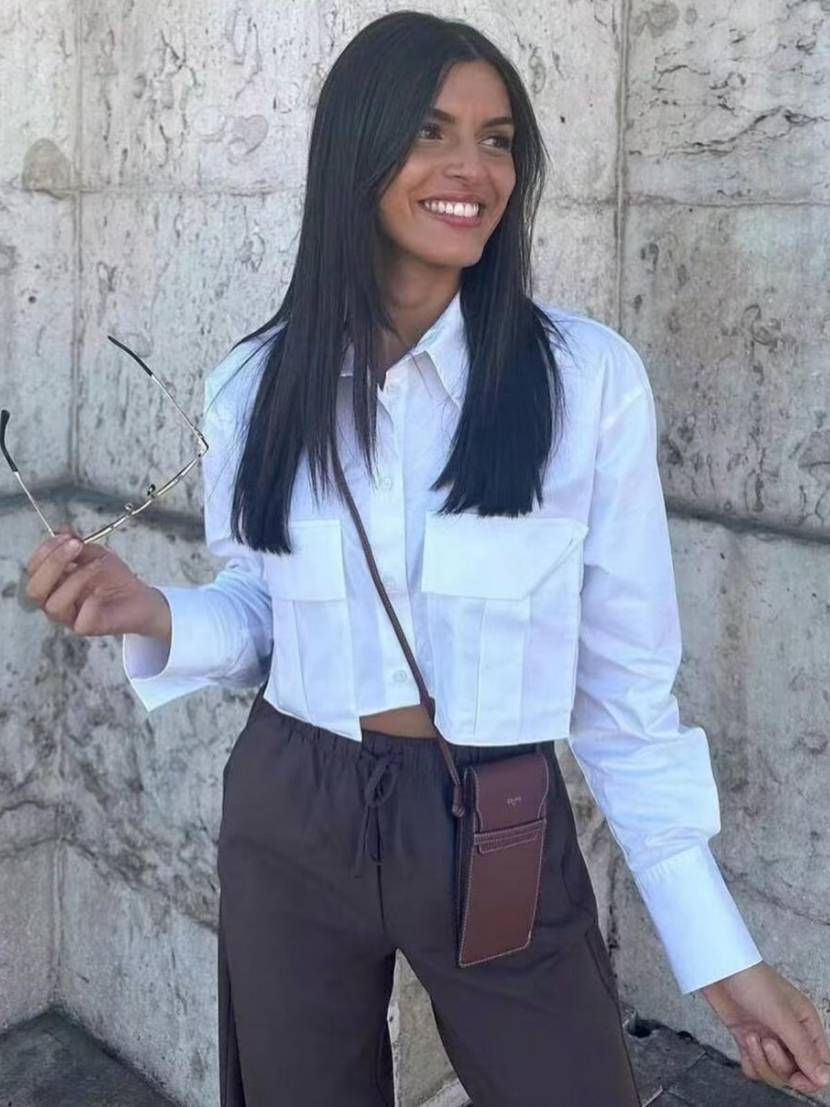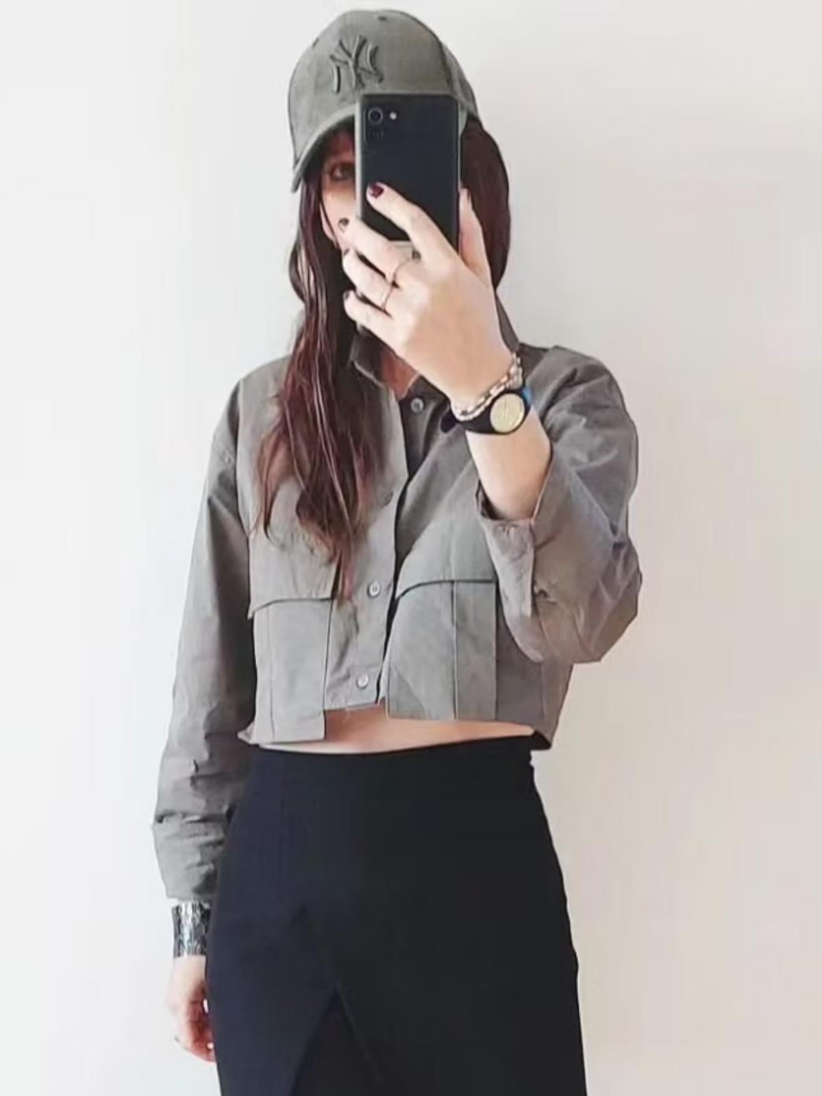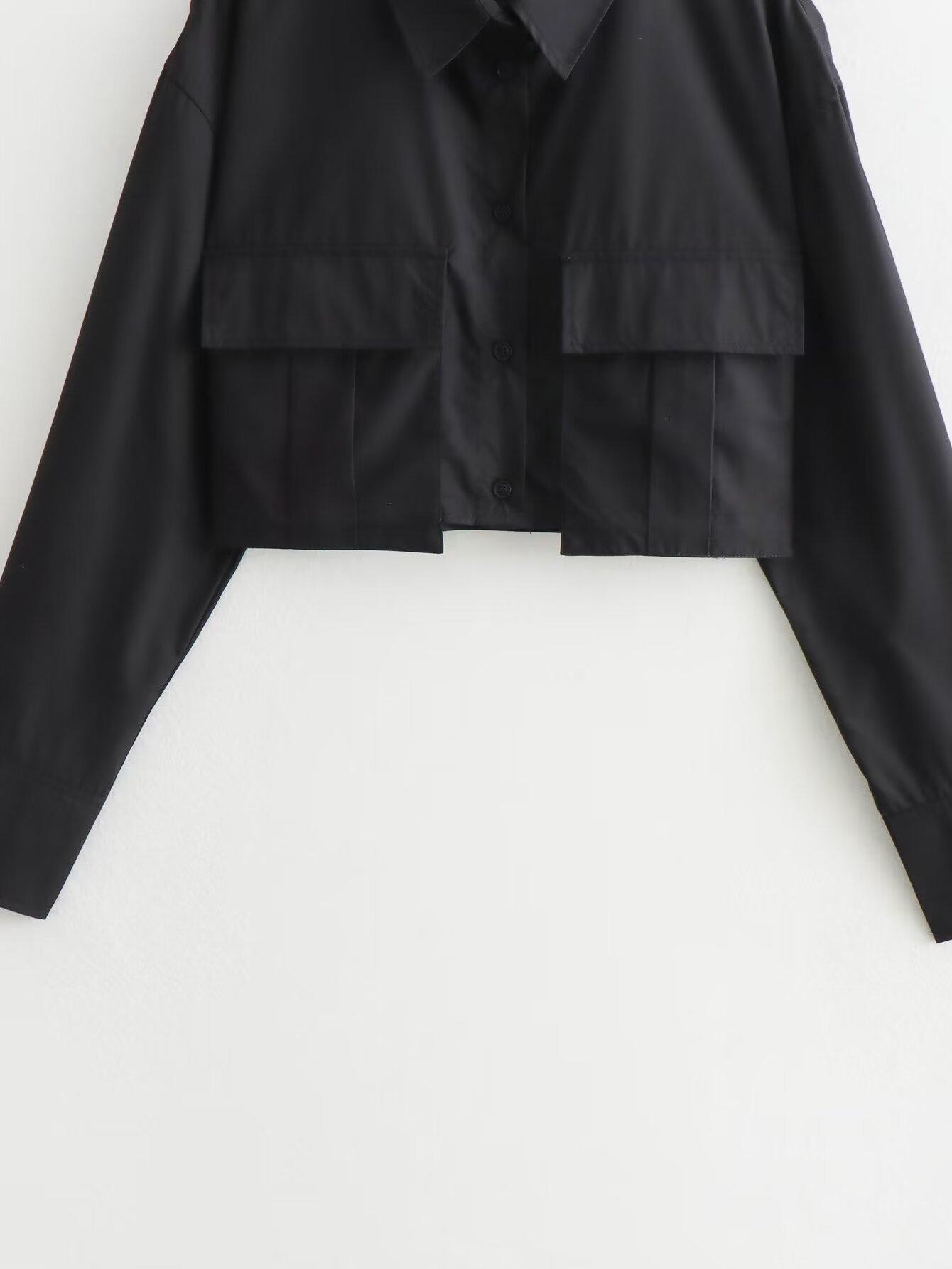Transfronterizo 2024 Amazon ropa de mujer nueva simple combinable color sólido bolsillo camisa corta de mujer femenina A19890