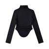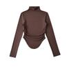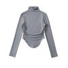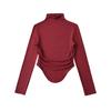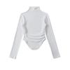 Camiseta plisada de cintura ajustada de estilo europeo y americano para mujer, camiseta de manga larga elástica ajustada con cuello alto de media altura para chica de primavera 2024