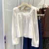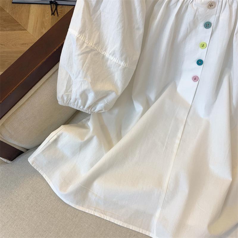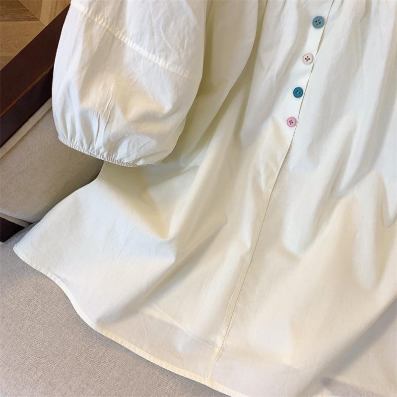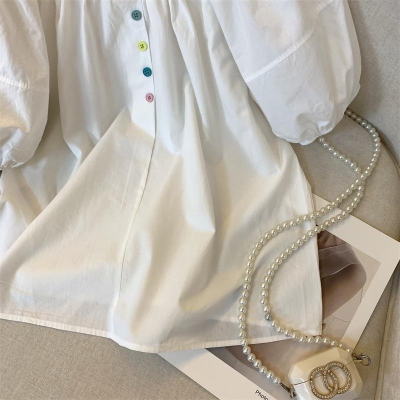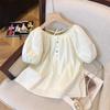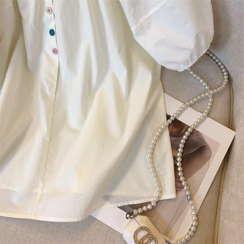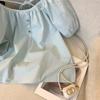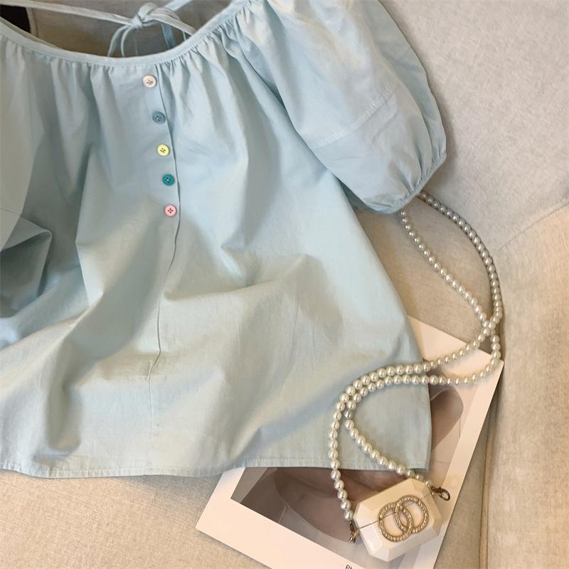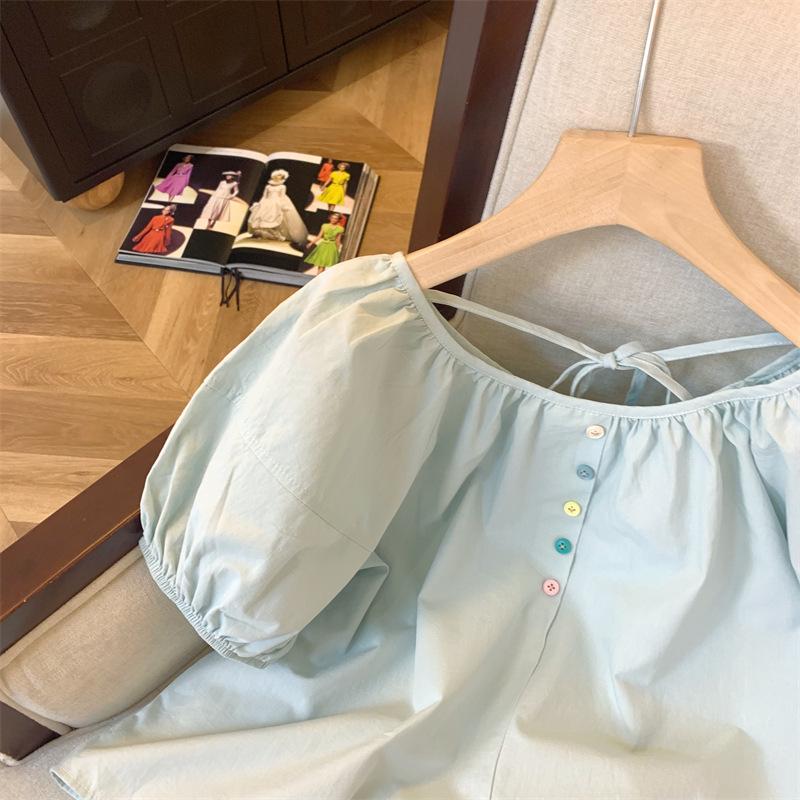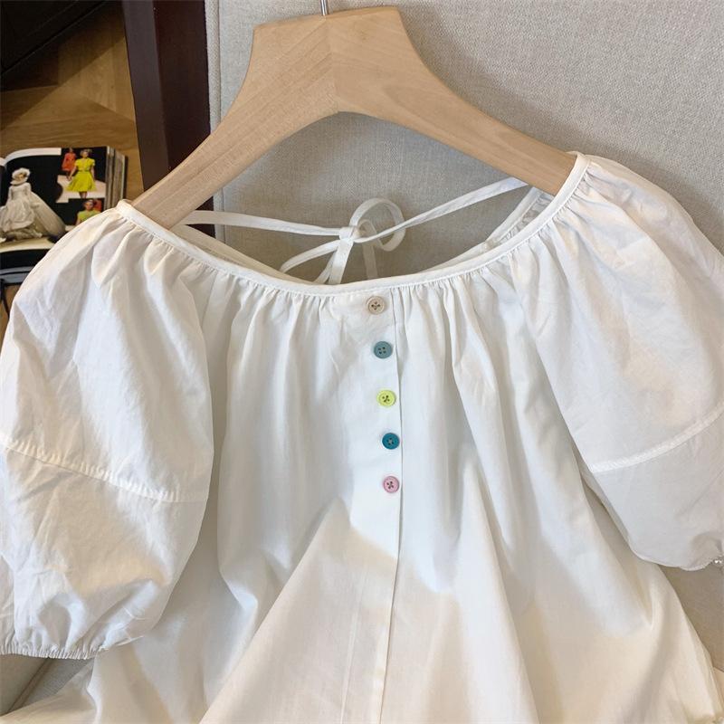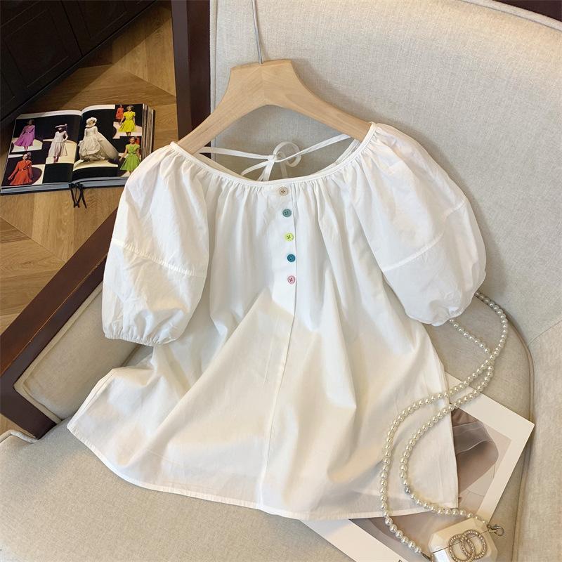Foto real simple y versátil 2024 verano nuevo versión coreana de dulce manga abullonada color sólido delgada cuello redondo camiseta de manga corta para mujer