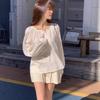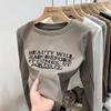 Camiseta de manga larga estilo americano retro para mujer, otoño, nuevo diseño elegante de espiga de pescado, camiseta básica corta adelgazante con sensación de moda