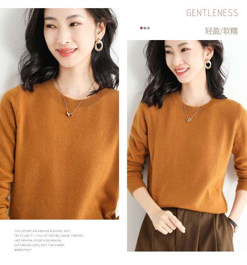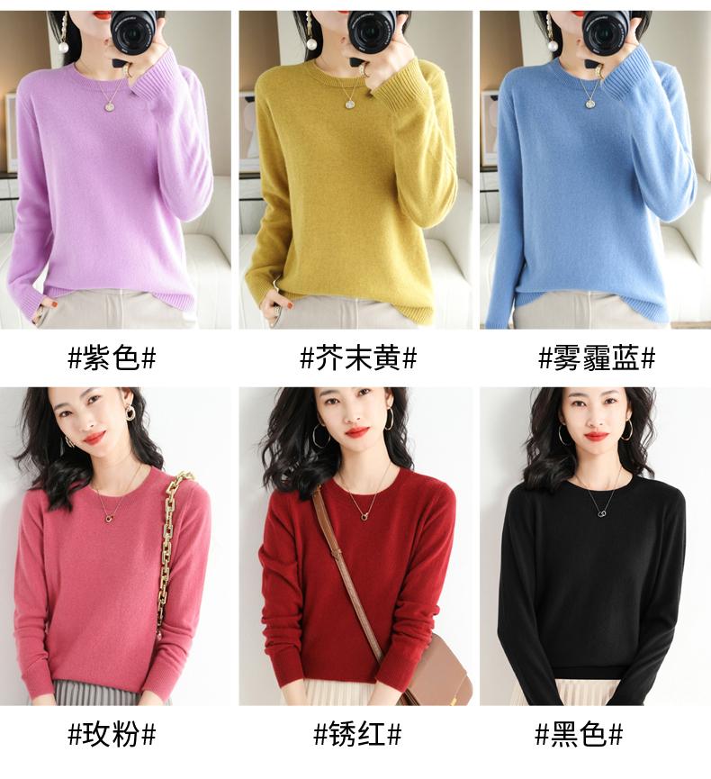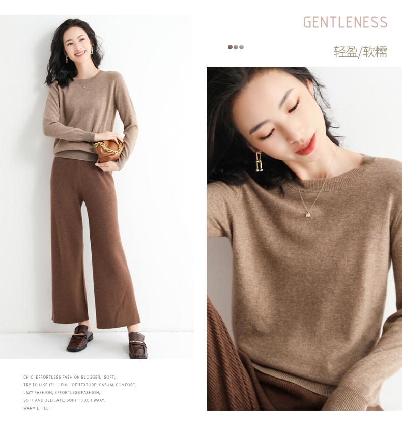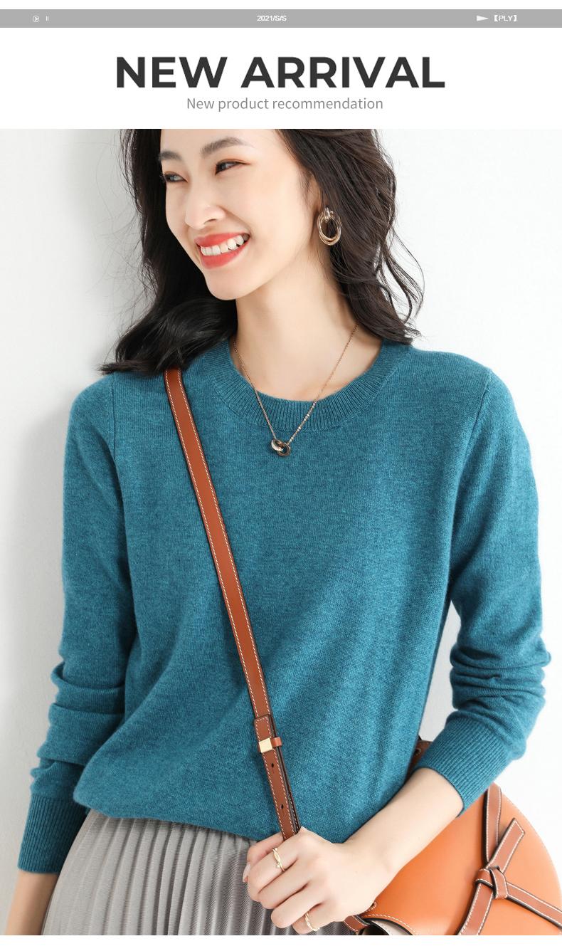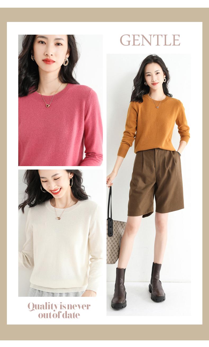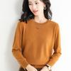Venta al por mayor de fábrica otoño e invierno nuevo suéter de punto para mujer ajustado color sólido manga larga cuello redondo fondo corto