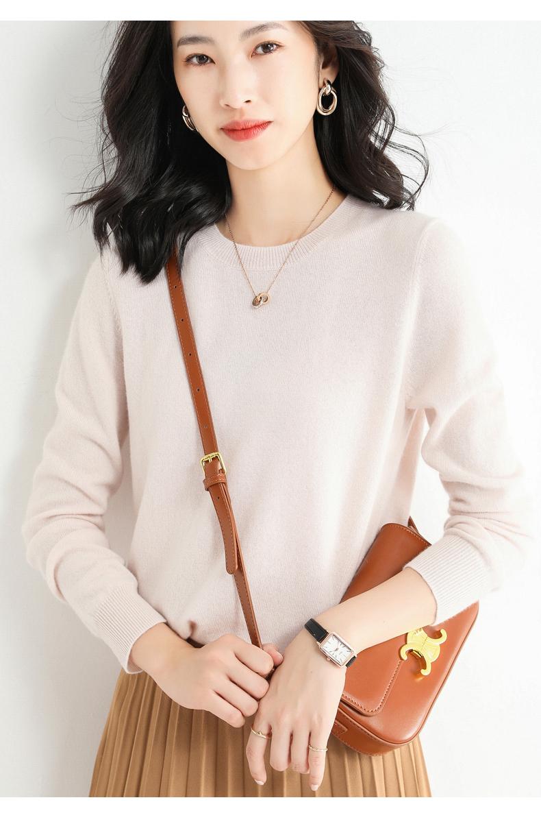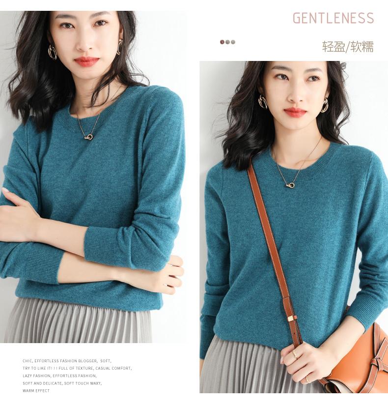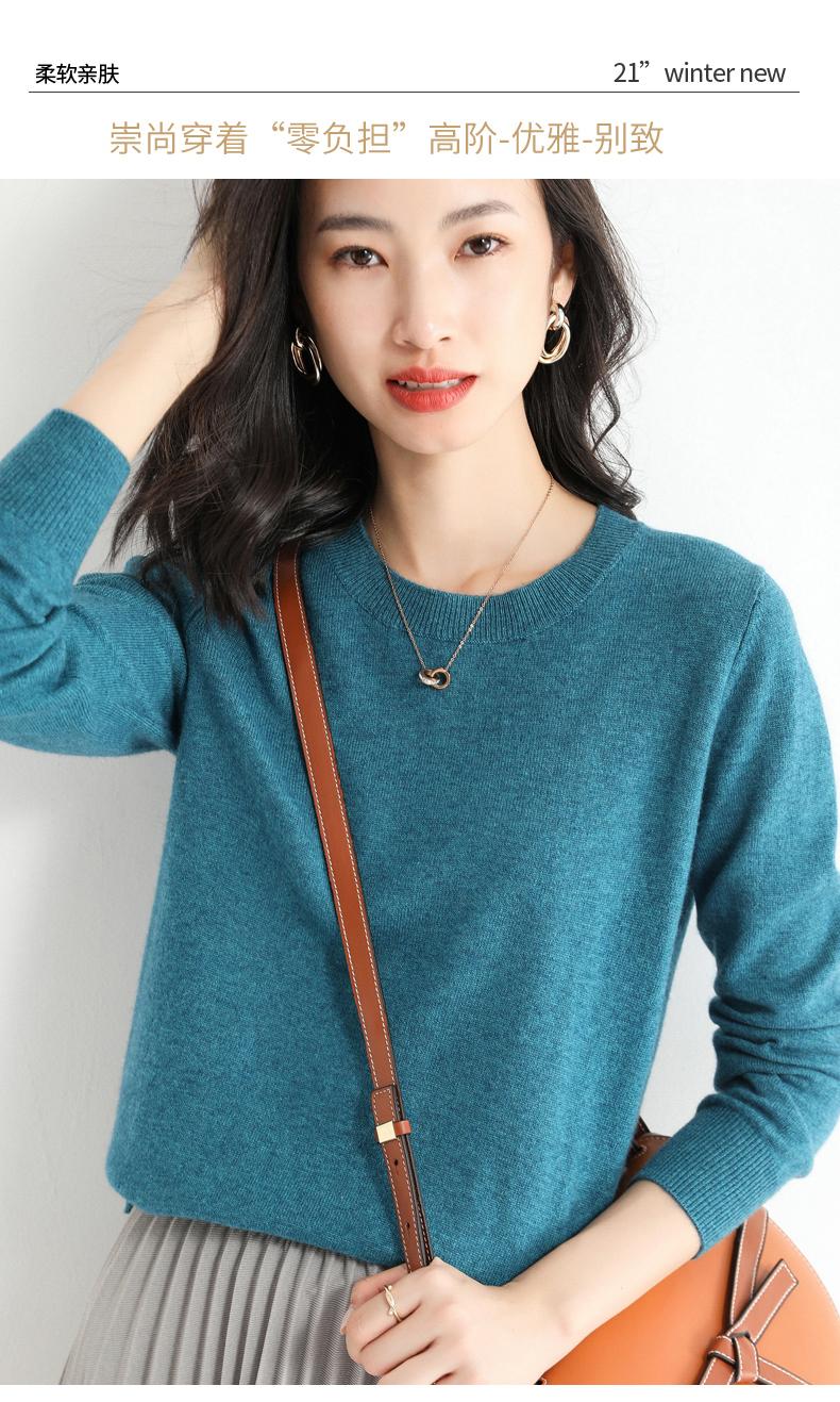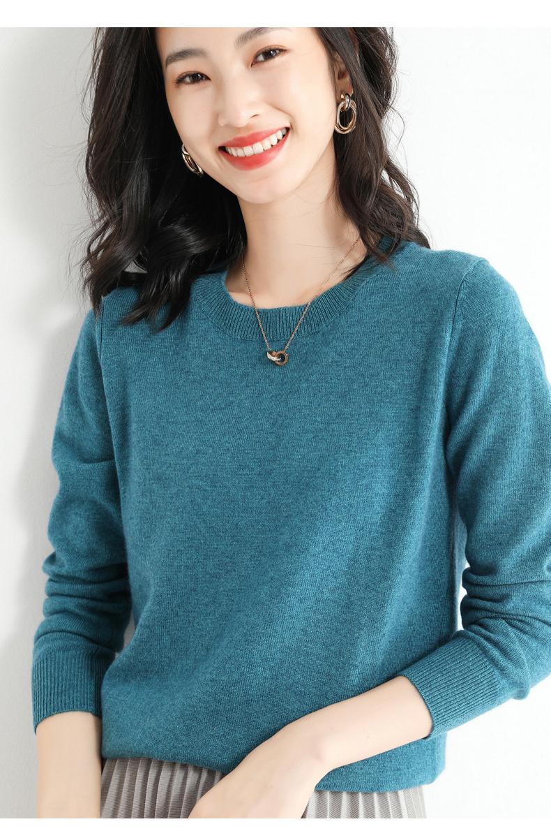 Venta al por mayor de fábrica otoño e invierno nuevo suéter de punto para mujer ajustado color sólido manga larga cuello redondo fondo corto
