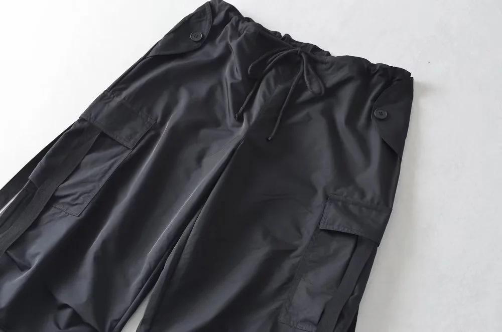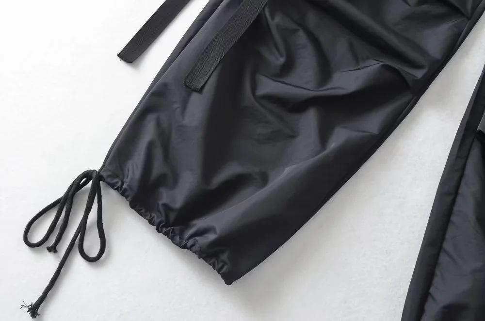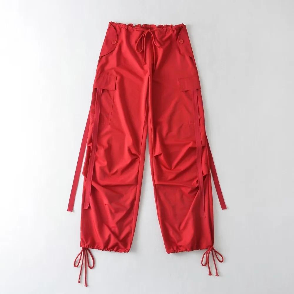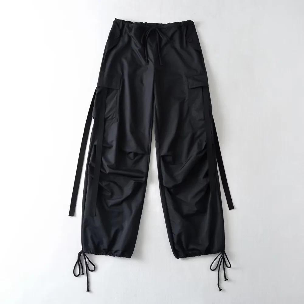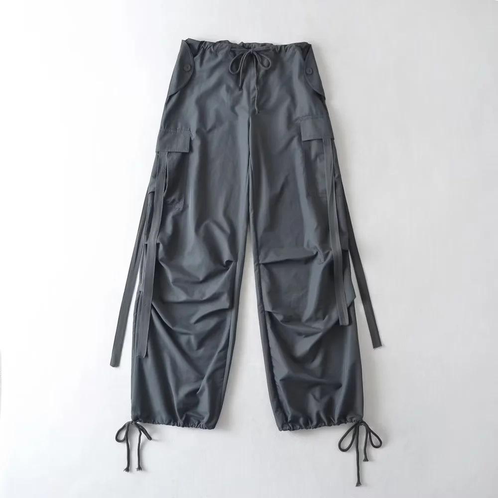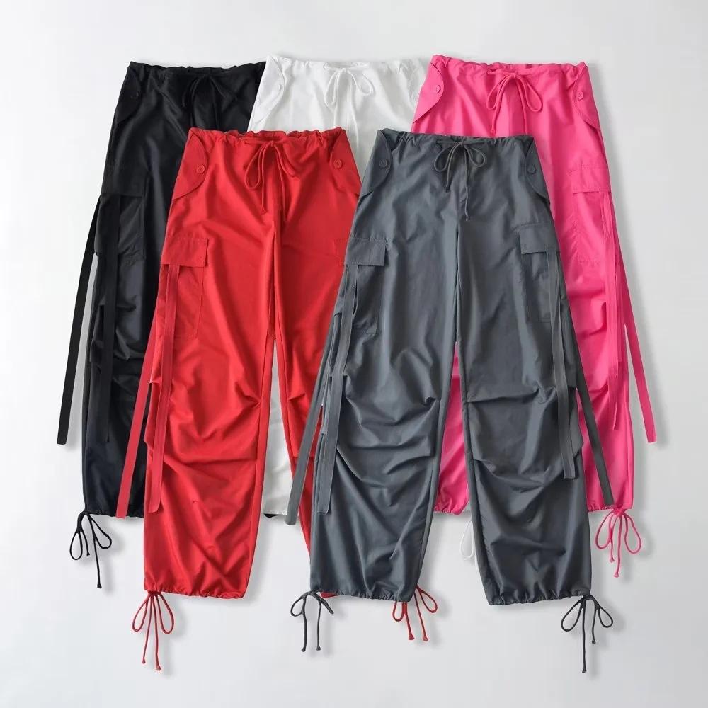 Pantalones de hip hop holgados con bolsillos y correa, de cintura alta y encaje con cordón, para mujer.