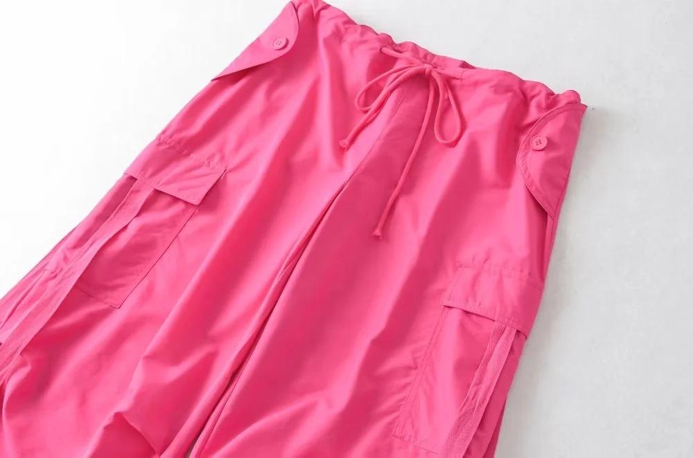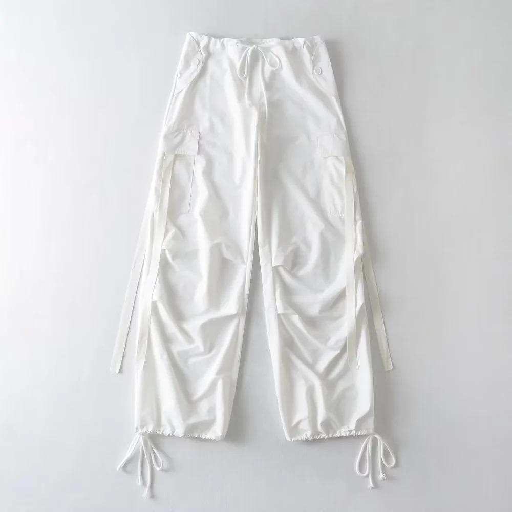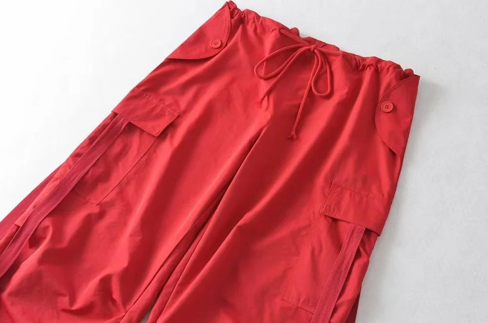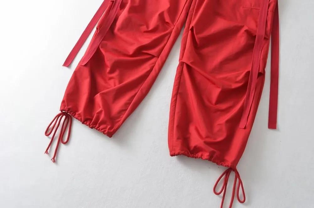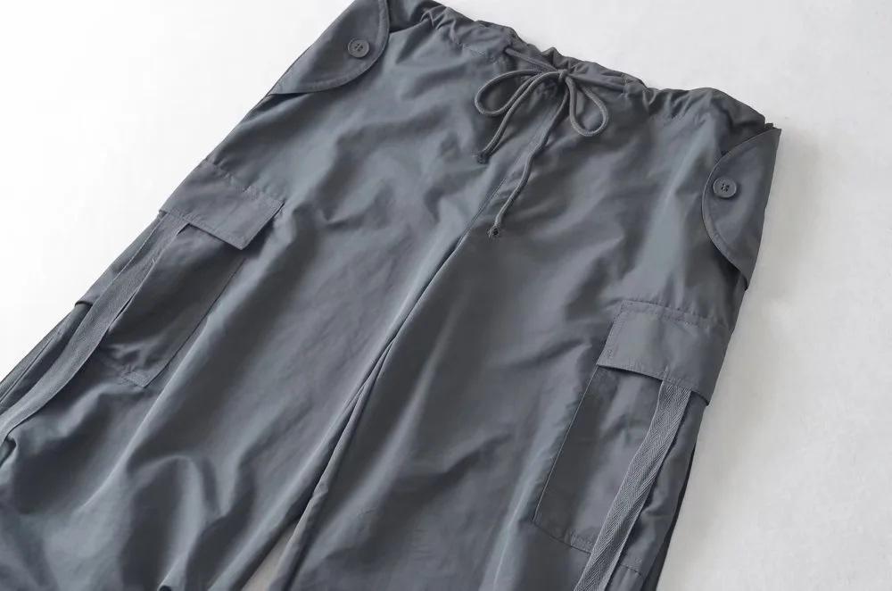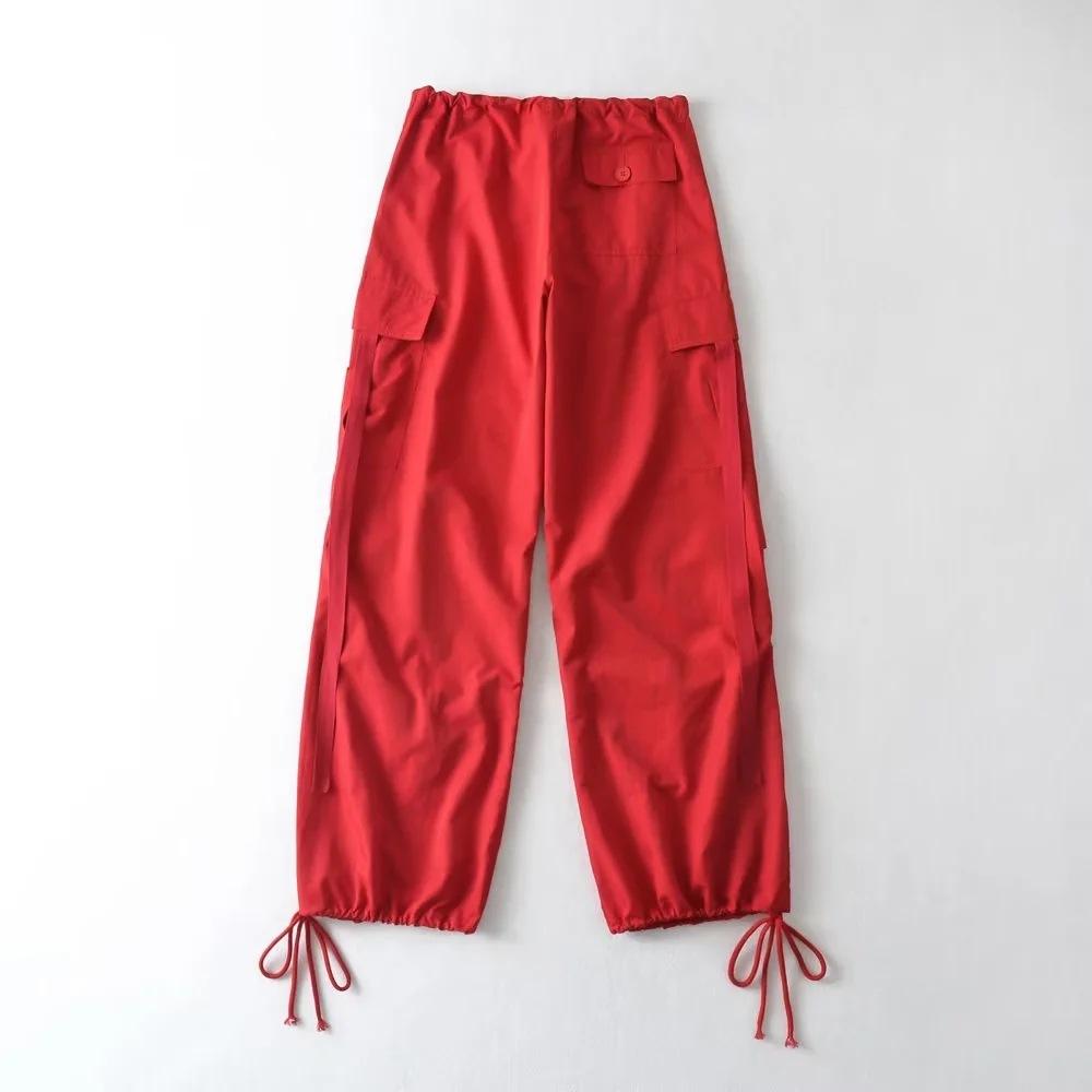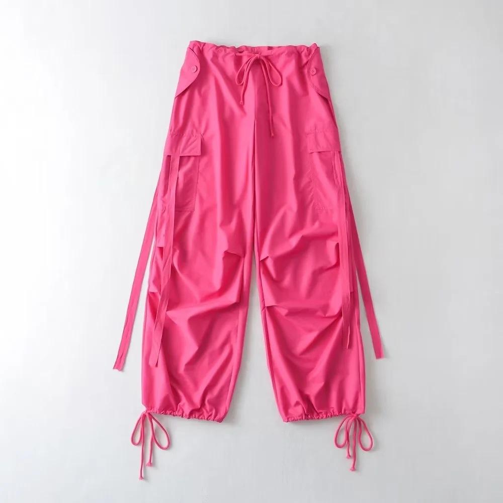 Pantalones de hip hop holgados con bolsillos y correa, de cintura alta y encaje con cordón, para mujer.