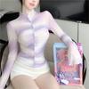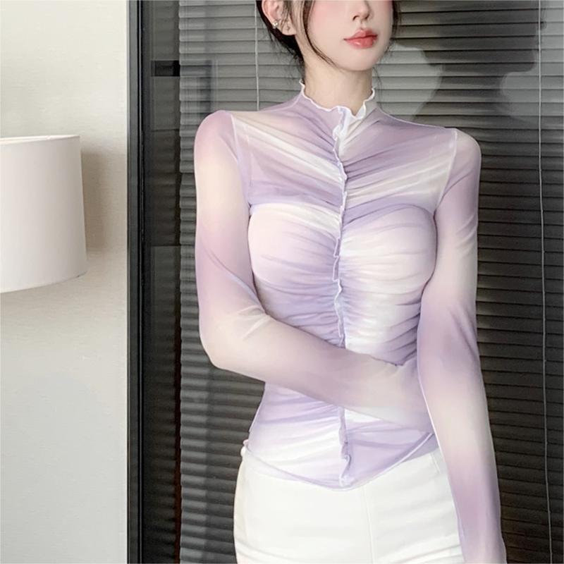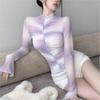 Ropa de otoño e invierno para mujer, novedad de 2023, jersey ajustado de manga larga para chica sexy, camisa de fondo con cuello alto de color degradado, top de mujer