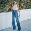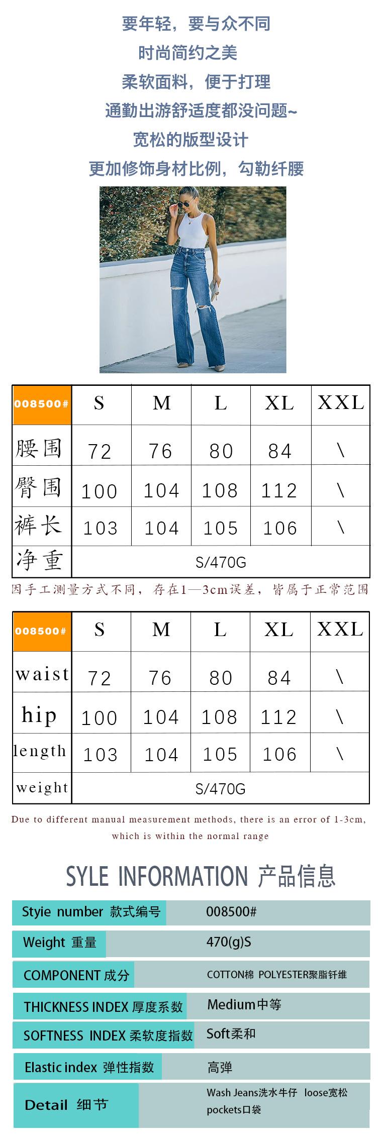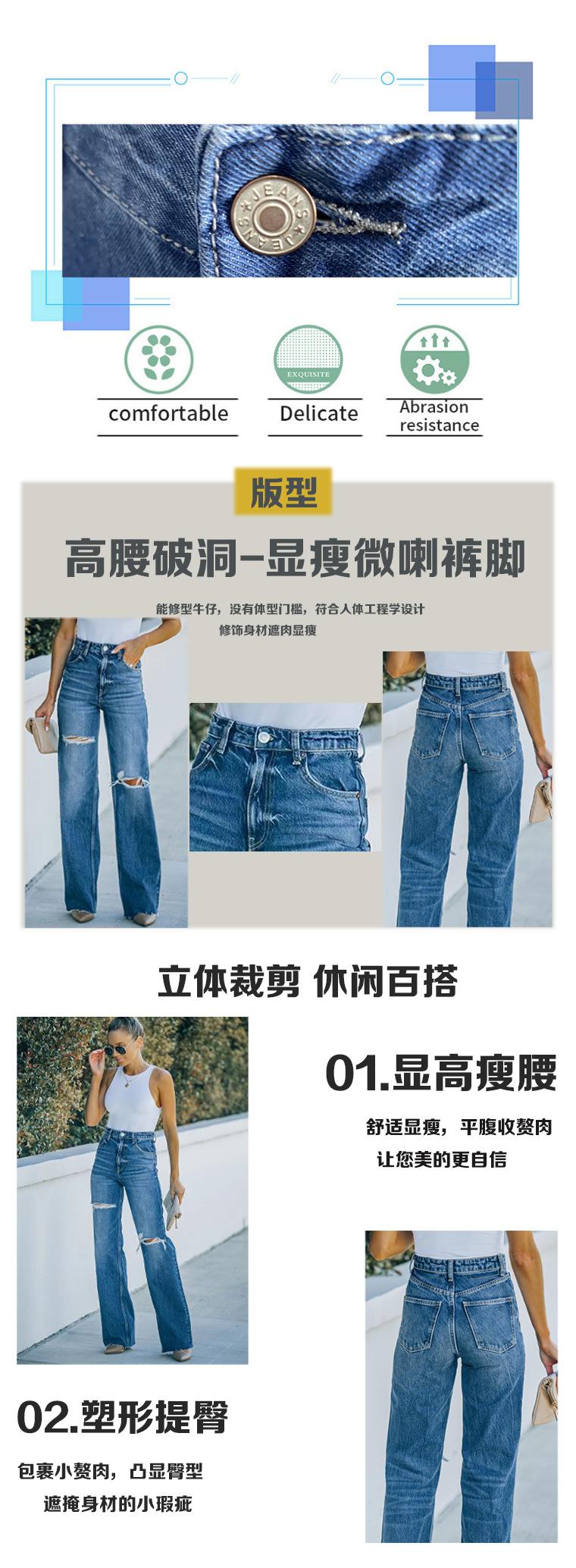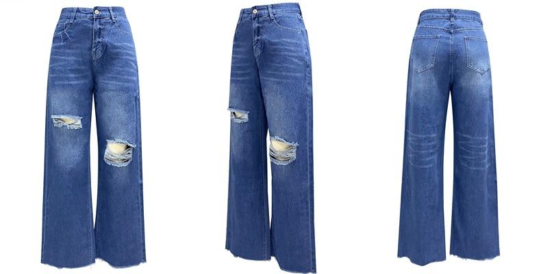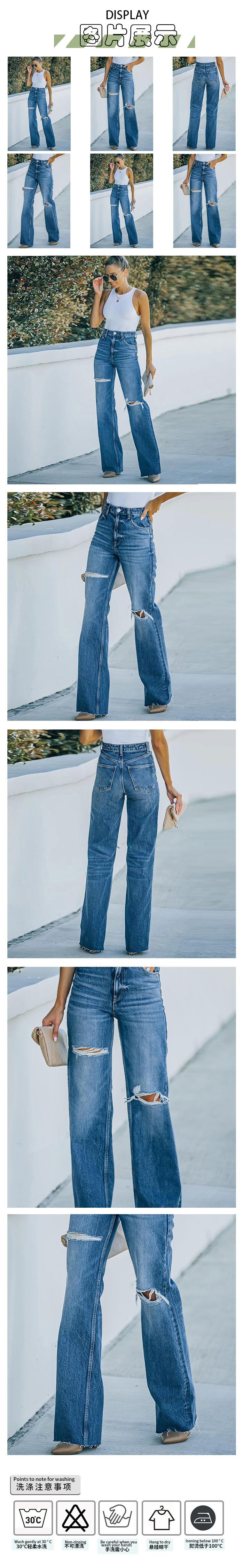 Ventas Directas de Fábrica 2022 Otoño Nuevo Jeans de Cintura Alta para Mujer Lavados Rotos Pierna Ancha Pantalones de Mezclilla Europeos y Americanos