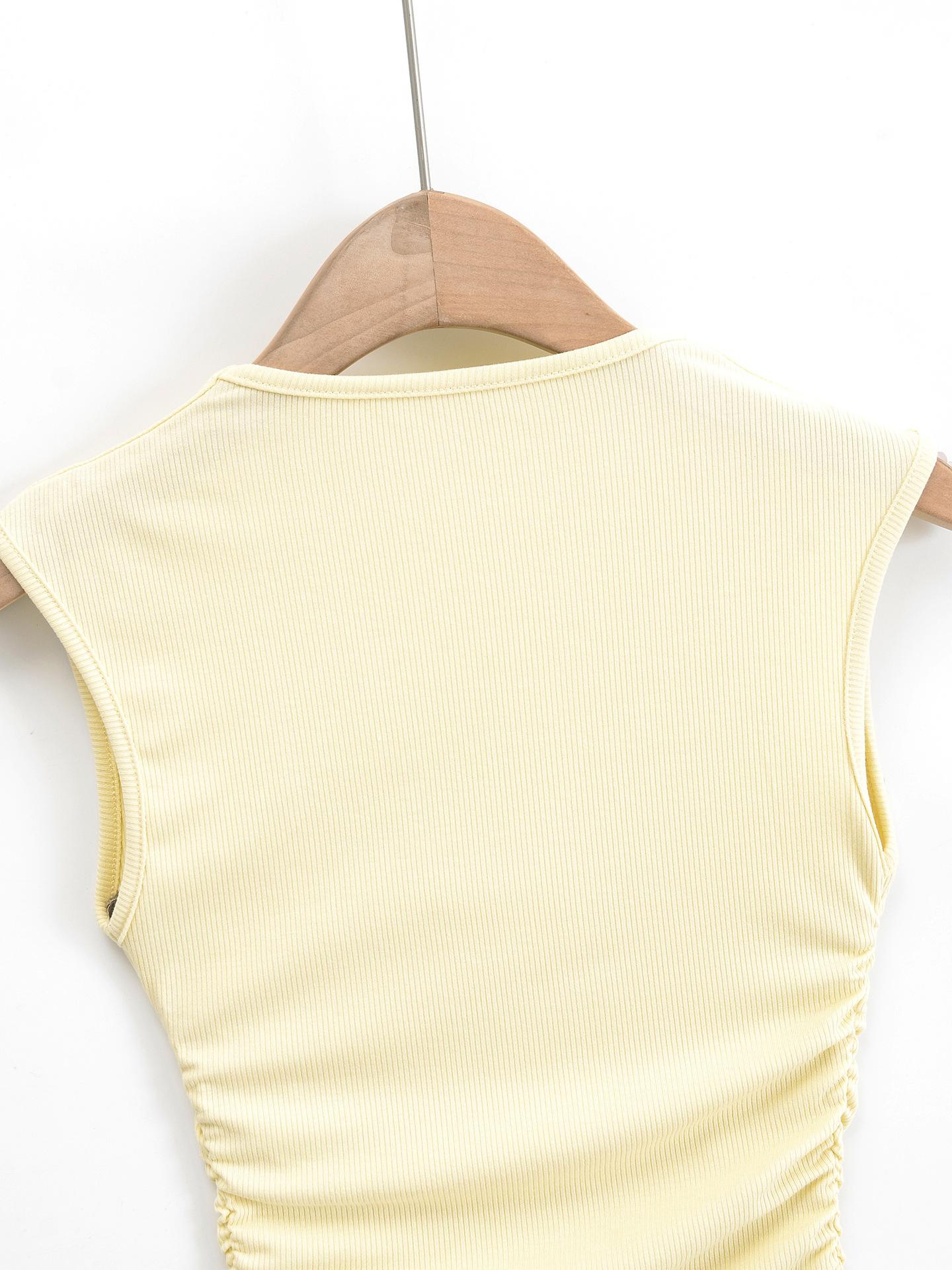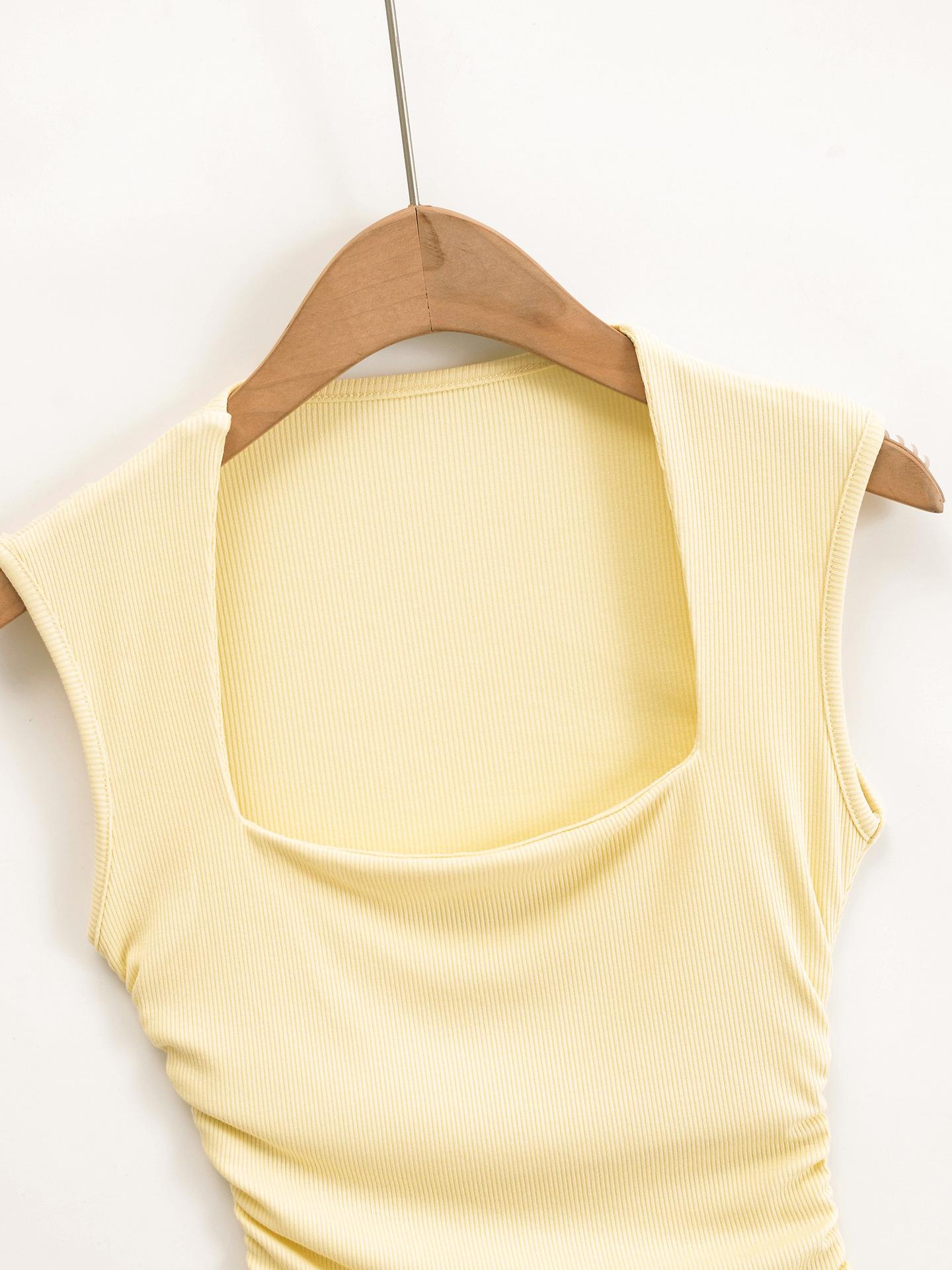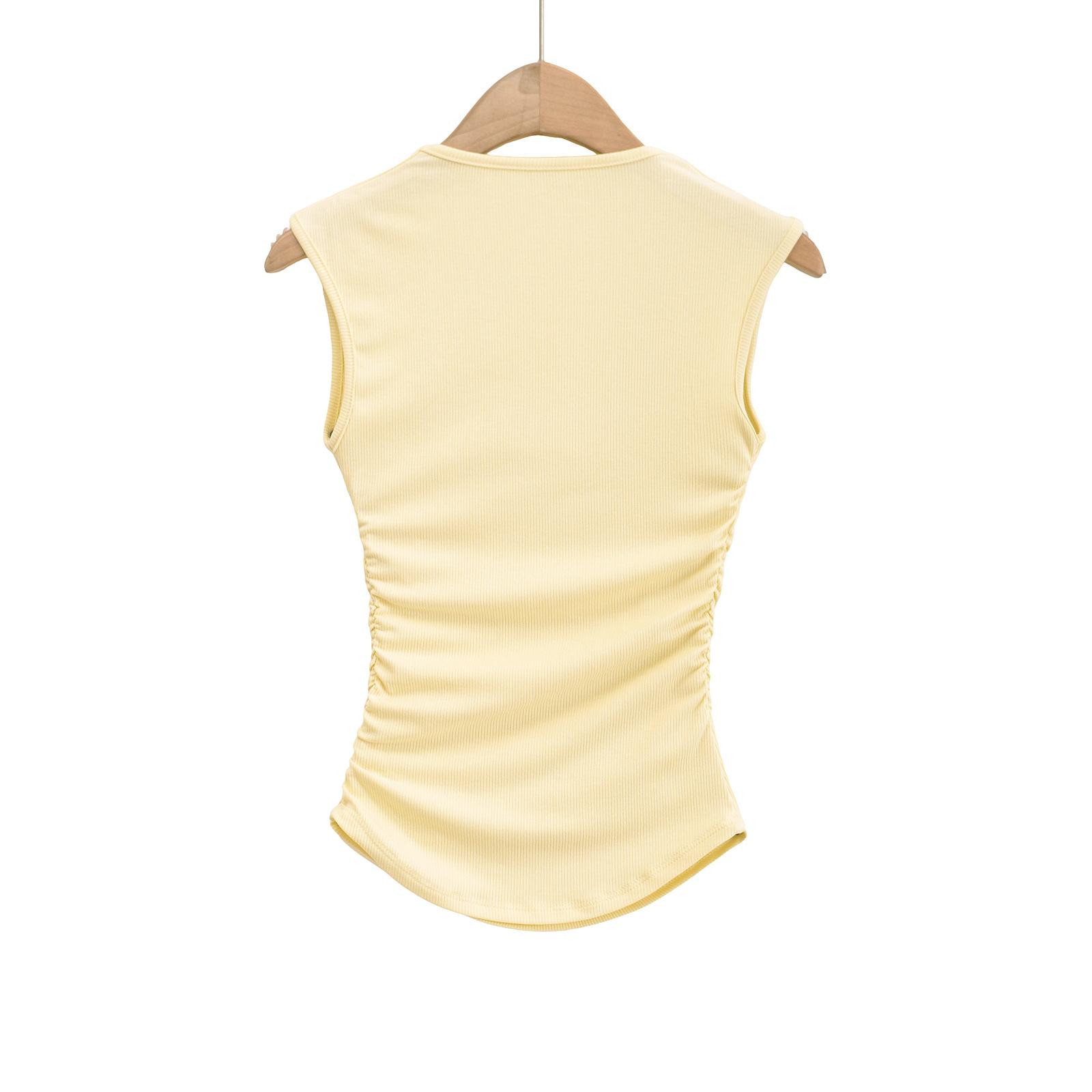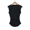 AP24173-24 primavera nuevo estilo europeo y americano plisado ajustado puro sexy cuello cuadrado sin mangas casual chaleco pequeño