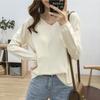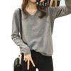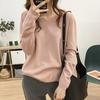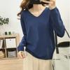 Suéter de punto holgado y ajustado con cuello en V para mujer, color liso, suave, encerado, cómodo, de manga larga, top combinable, otoño 2021
