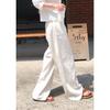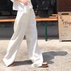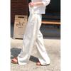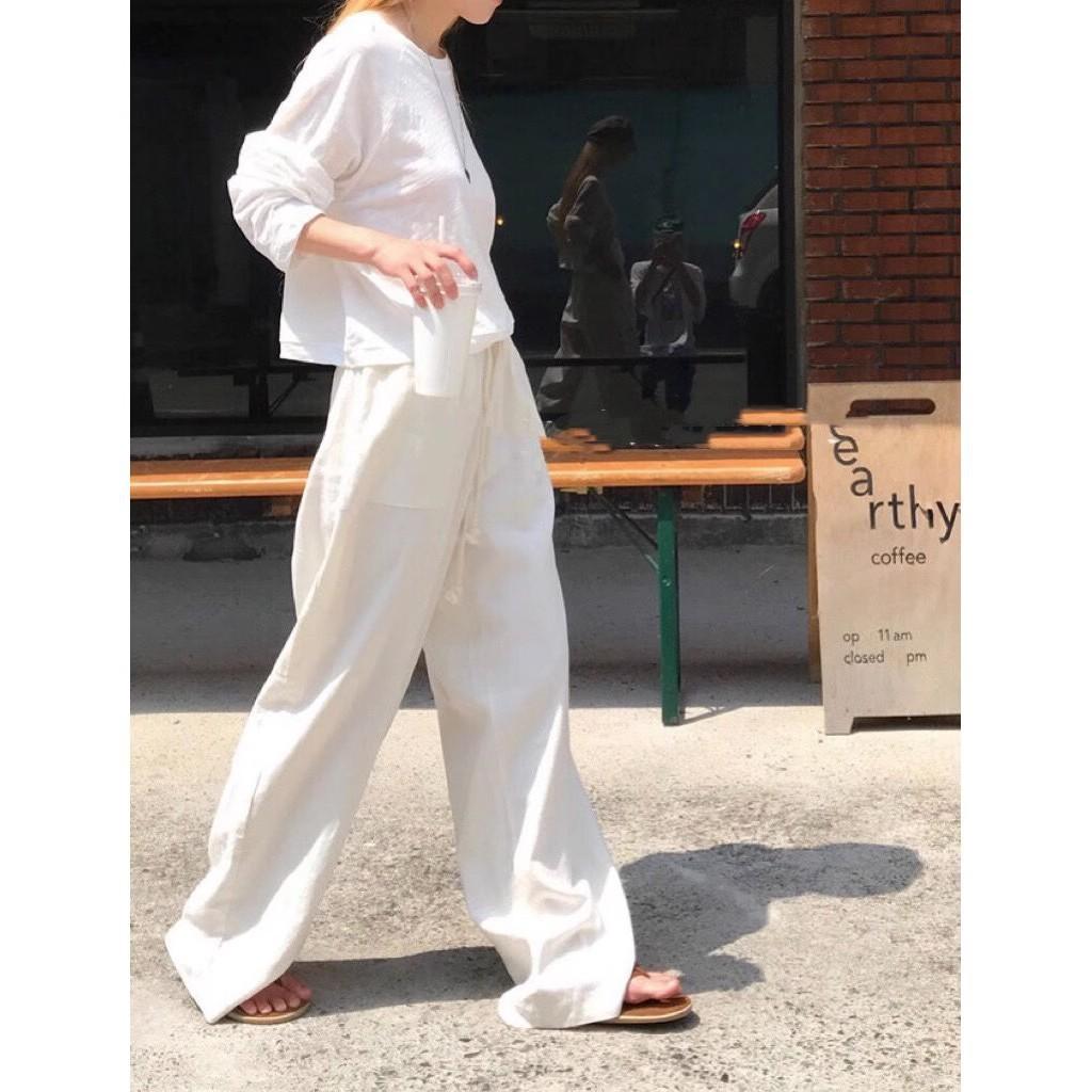 Pantalones blancos de algodón y lino para mujer, de verano, finos, estilo japonés, holgados, casuales, rectos, de lino, de pierna ancha