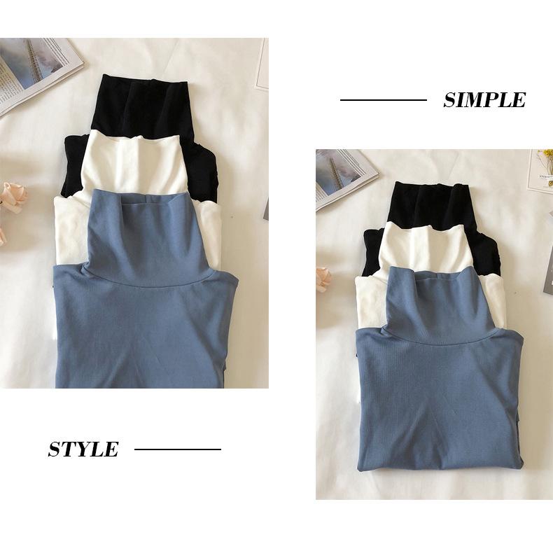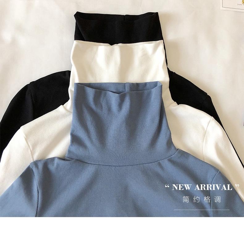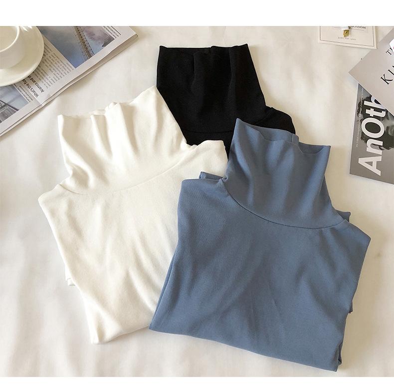 Camiseta básica de cuello alto de color sólido para mujer 2025 Versátil estilo coreano Estilo Bm Top ajustado de manga larga Venta al por mayor transfronteriza