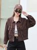 Ropa de mujer de comercio exterior Primavera y otoño 2024 Nueva chaqueta de pana con solapa versátil retro abrigo de manga larga para mujer