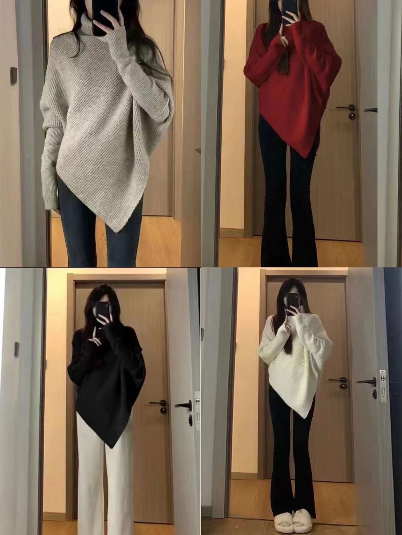 Suéter de cuello alto irregular para mujer, otoño e invierno 2024, nuevas explosiones, estilo coreano suave, estilo perezoso, top de punto grueso