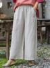 Pantalones anchos de lino fino de verano 2024, con borlas bordadas, estilo artístico, holgados, adelgazantes, con cintura elástica y pierna recta para mujer