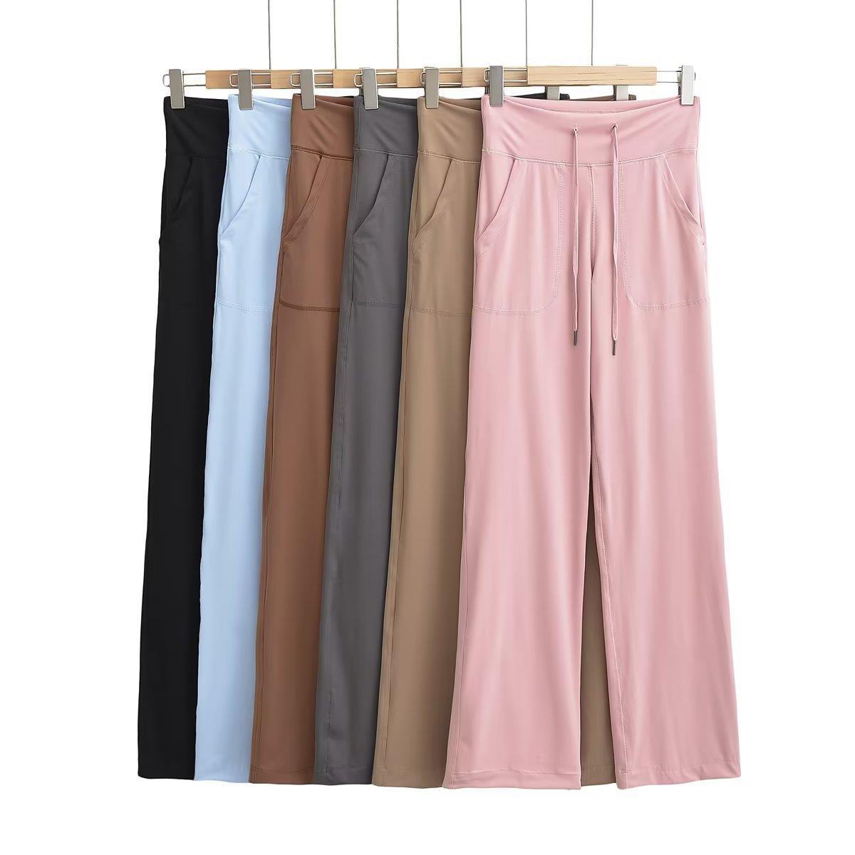 Pantalones de yoga y fitness de estilo europeo y americano para mujer, novedad de 2023, ajustados, de cintura alta, rectos, con cordón, pantalones deportivos informales.
