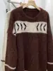Suéter de cuello redondo de jacquard de estilo perezoso para mujer, novedad de otoño e invierno de 2024, suéter holgado retro para exteriores, cárdigan, abrigo para mujer