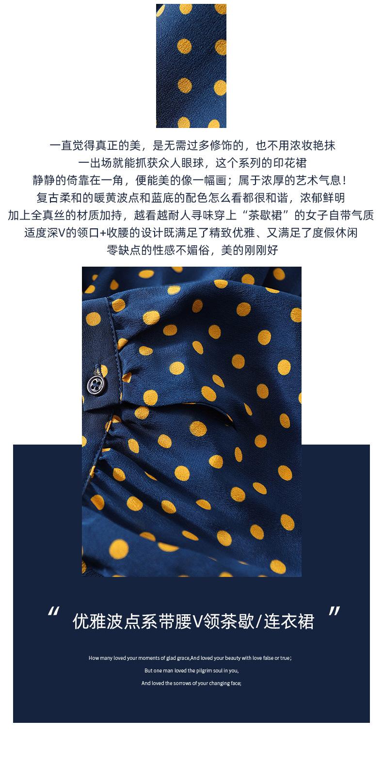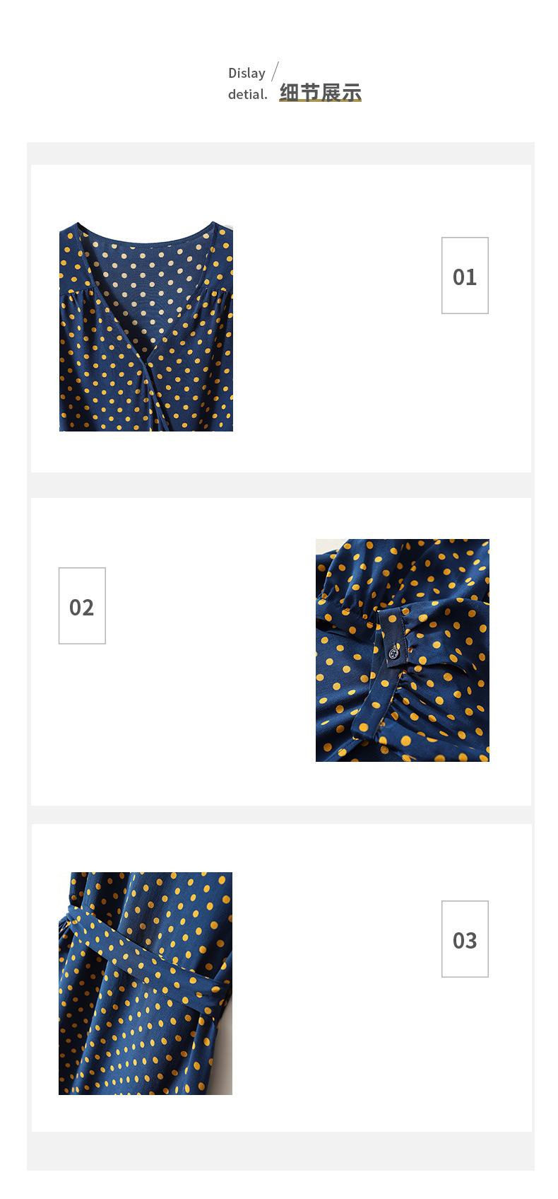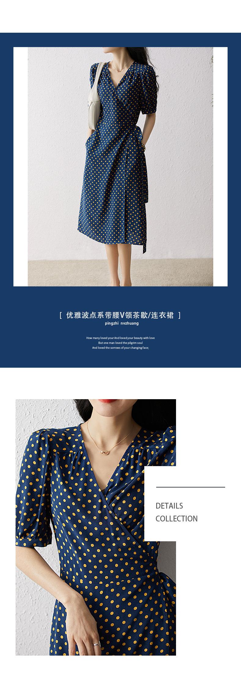 Vestido de Seda con Cordones y Lunares para Mujer Seda de Morera Cuello en V Falda para la Hora del Té de Gama Alta Largo Midi Verano Ropa de Mujer