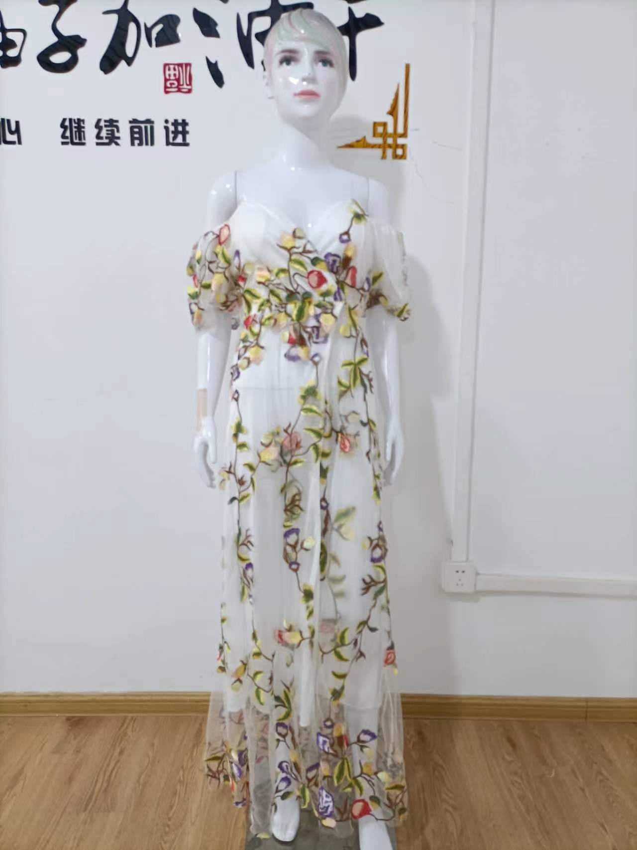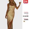 2025 Primavera y Verano Nuevo Ropa Europea y Americana Vestido Un Hombro Top Tubo Abertura Bordado Elegante Malla Falda Larga