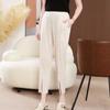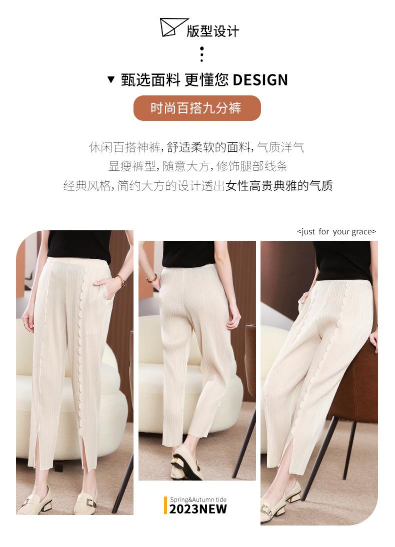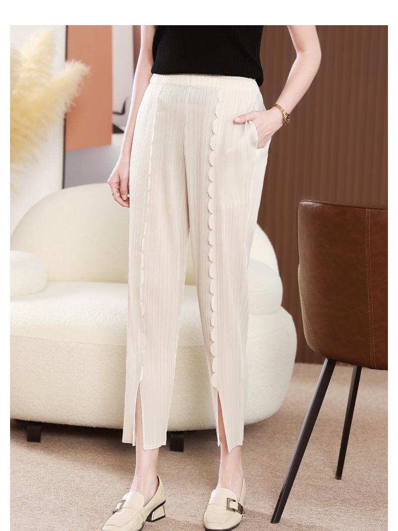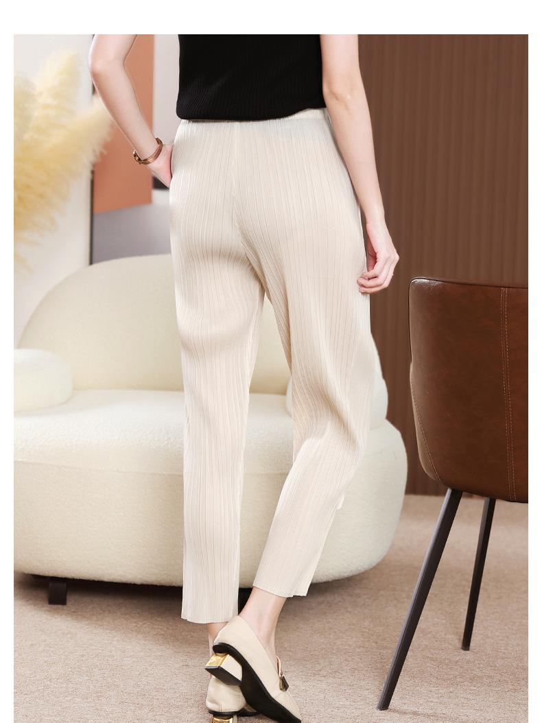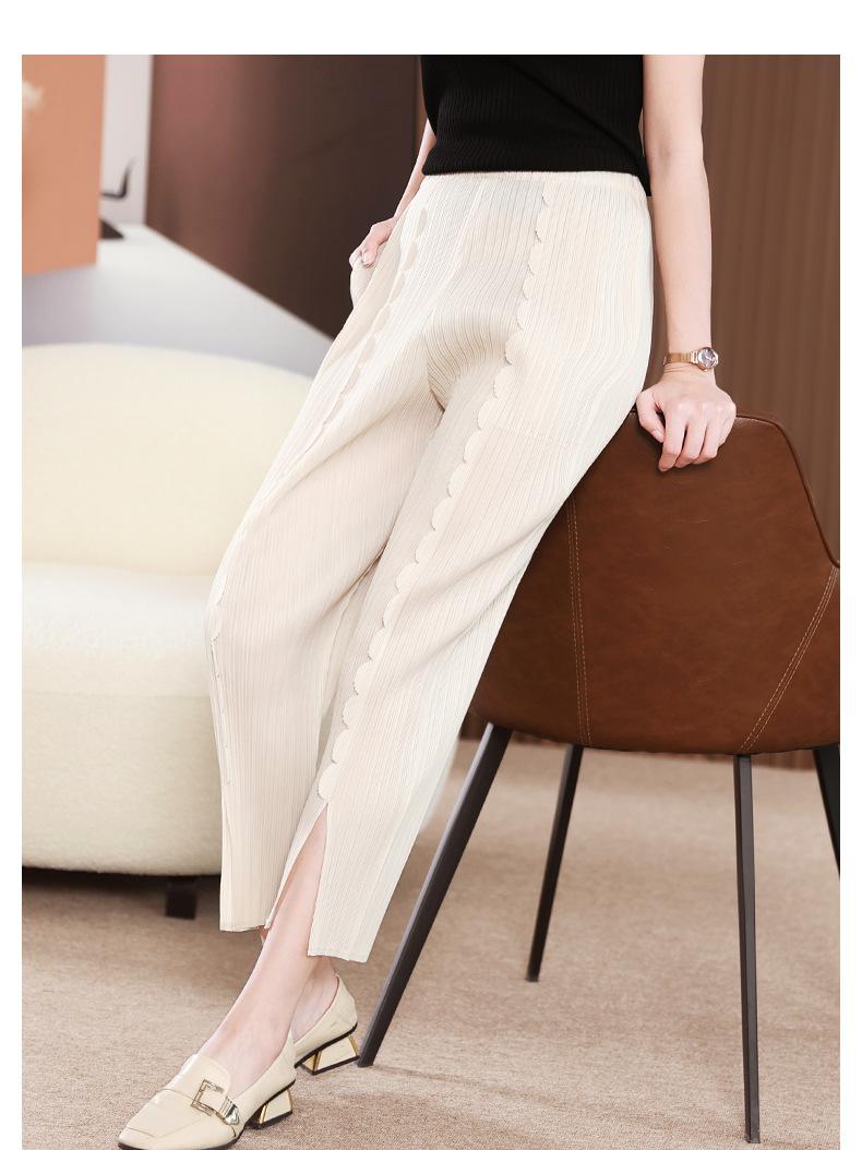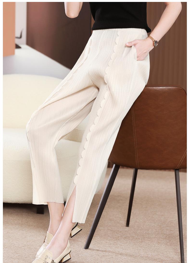 Pantalones Casuales Plisados para Mujer Verano 2024 Nuevo Blanco Pantalón Nueve Puntos Miyake Corte Slim Abertura Pantalón Pierna Pequeña