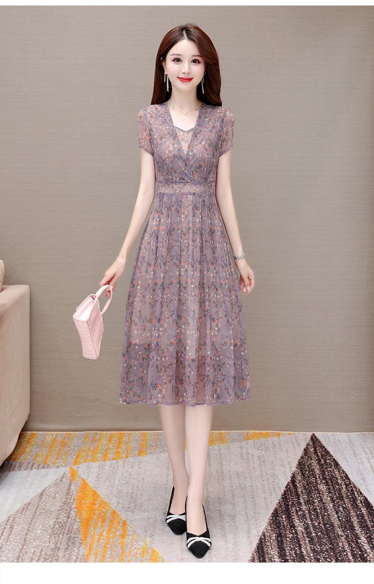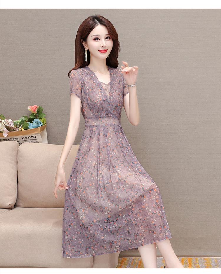Vestido de Seda Vestido de Verano para Mujer 2024 Nuevo Talla Grande Cintura Seda de Morera Elegante Dama Madre Falda Larga Trendy