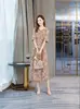 Vestido de nuevo estilo con cintura entallada y cuello en V, elegante y lujoso, color puro, vestido midi para mujer