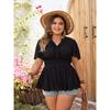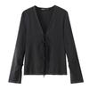 Camisa negra larga y ajustada de talla grande de color liso con cintura cruzada de Amazon 2024 para mujer, estilo europeo y americano