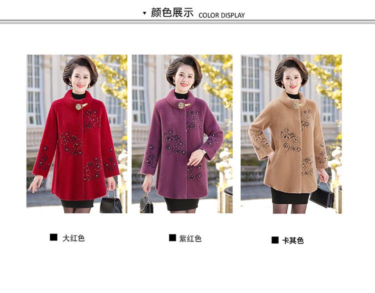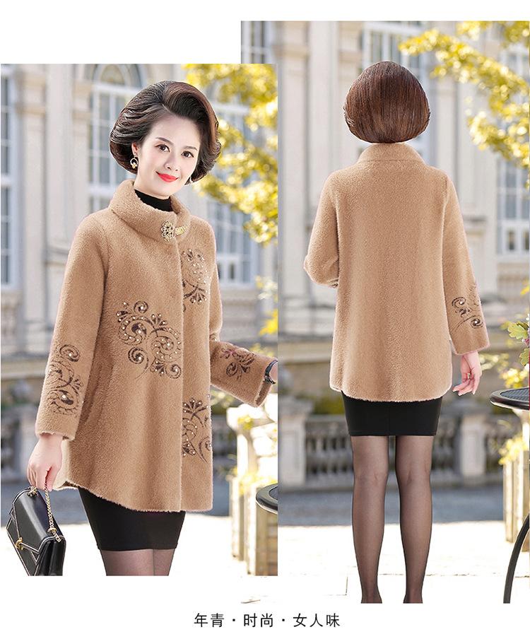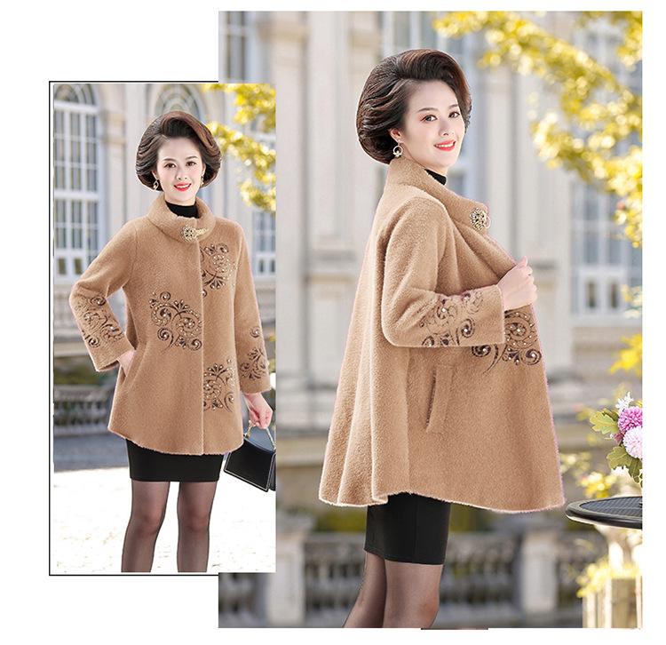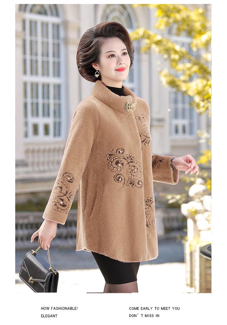 Abrigo de Forro Polar de Visón Grueso de Otoño e Invierno para Mamá Abrigo de Lana Elegante de Longitud Media Top de Talla Grande para Mujeres de Mediana Edad y Mayores