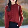 Moda Sentido de Alta Gama Reductor de Edad Prendas de Punto de Lana Primavera y Otoño Nuevo Commuter Suéter Sencillo de Manga Larga Temperamento Top Básico