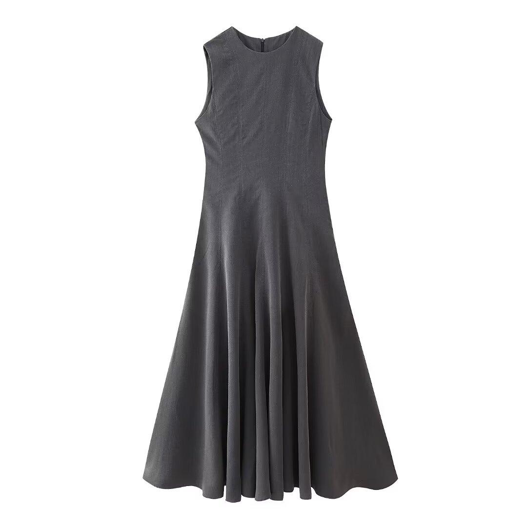 Ropa de mujer transfronteriza de estilo europeo y americano, venta al por mayor, vestido midi sin mangas con cuello redondo, falda de cintura alta y vuelo grande, primavera 2024