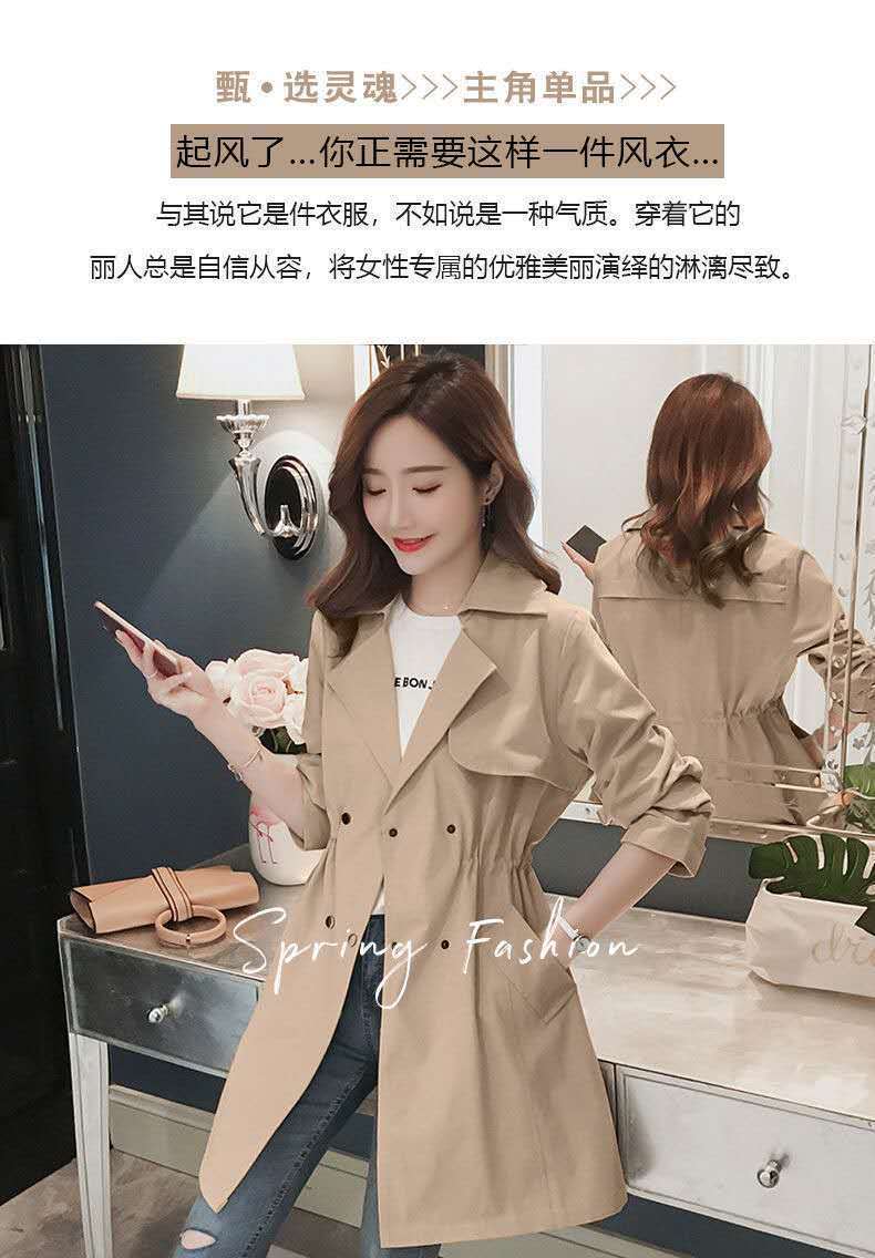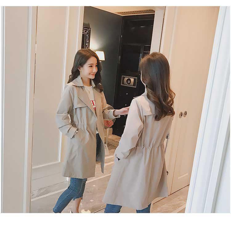 Rompevientos para Mujer Largo Medio Estilo Coreano 2025 Nuevo Estilo Entallado Casual Elegante Ropa Exterior Chaqueta Delgada para Mujer Primavera y Otoño