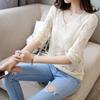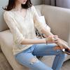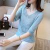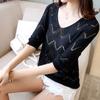 Tejido de punto con corte en V y abertura para mujer, verano holgado 2025 nuevo estilo coreano versátil fino con agujeros blusa top color puro