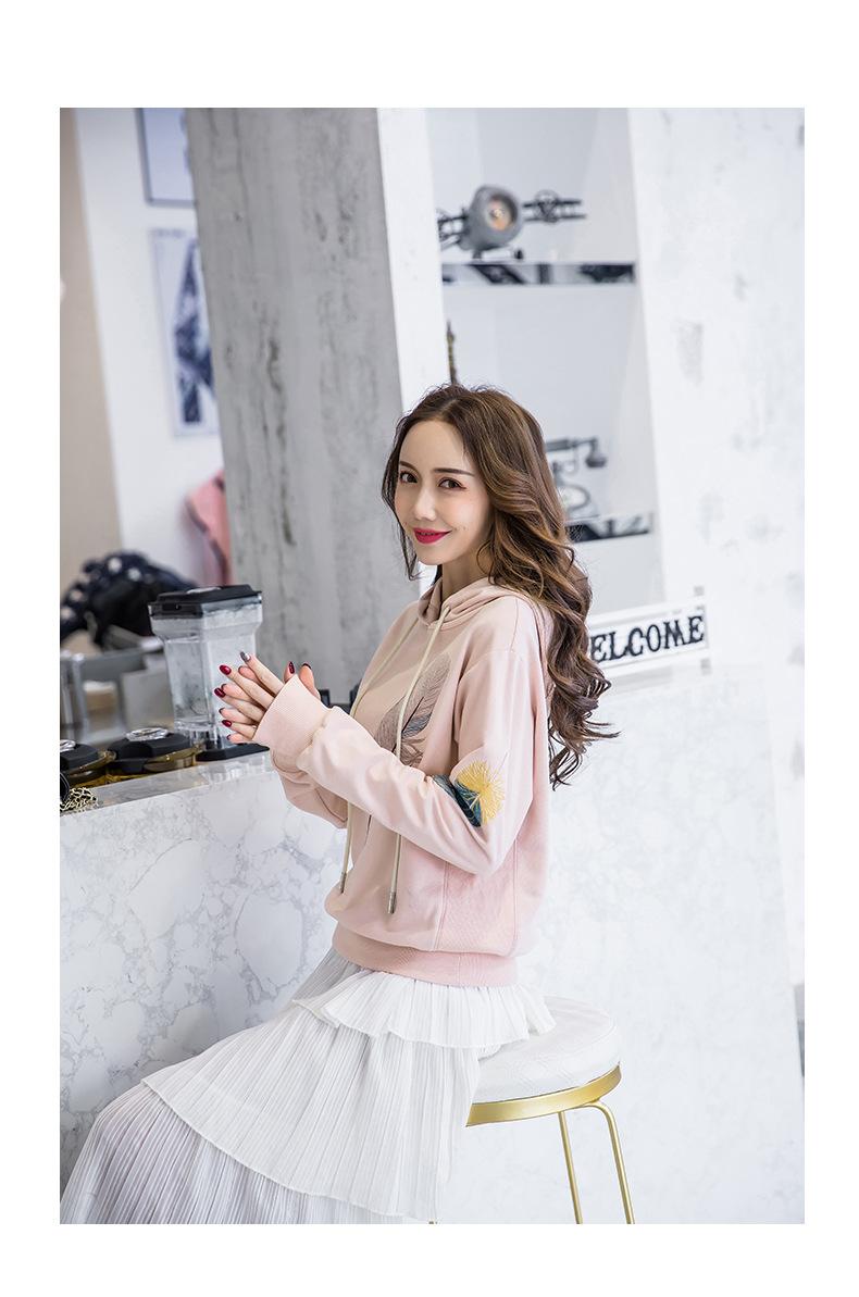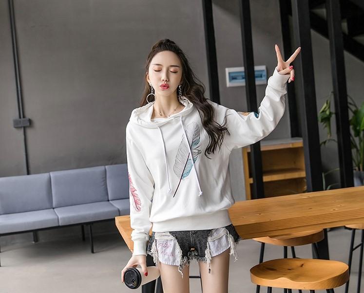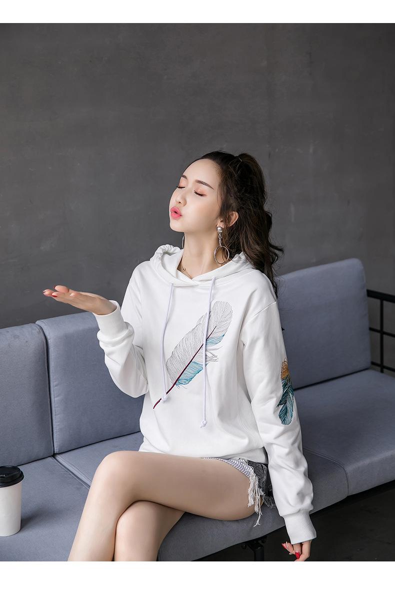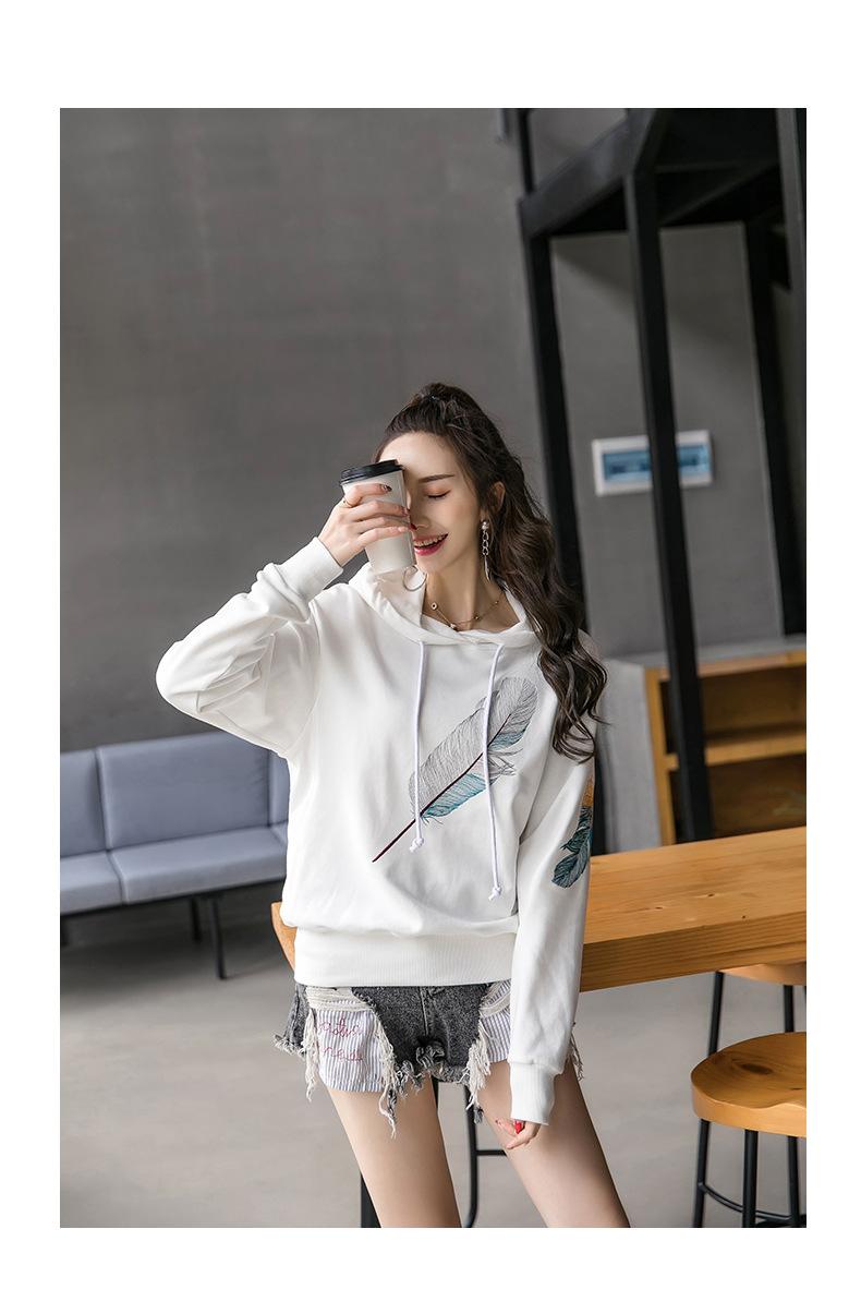 Suéter con capucha bordado con estampado holgado informal de estilo coreano, ropa fina de primavera y otoño para mujer