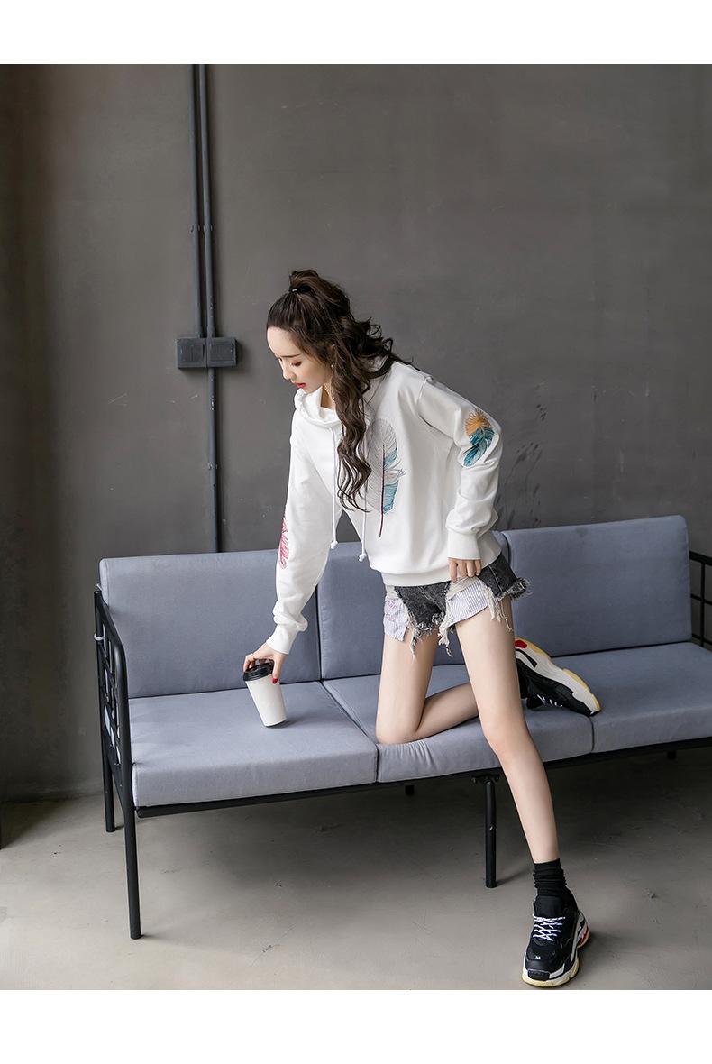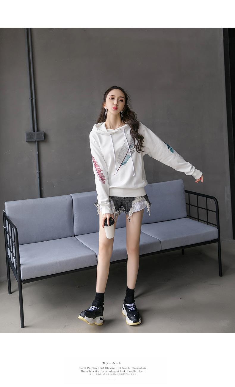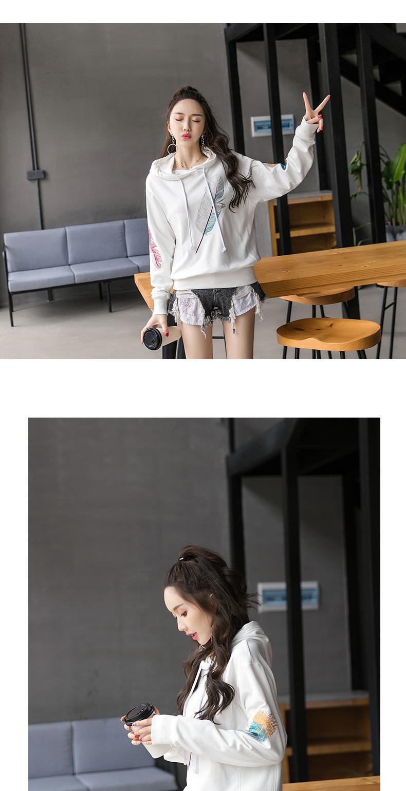 Suéter con capucha bordado con estampado holgado informal de estilo coreano, ropa fina de primavera y otoño para mujer