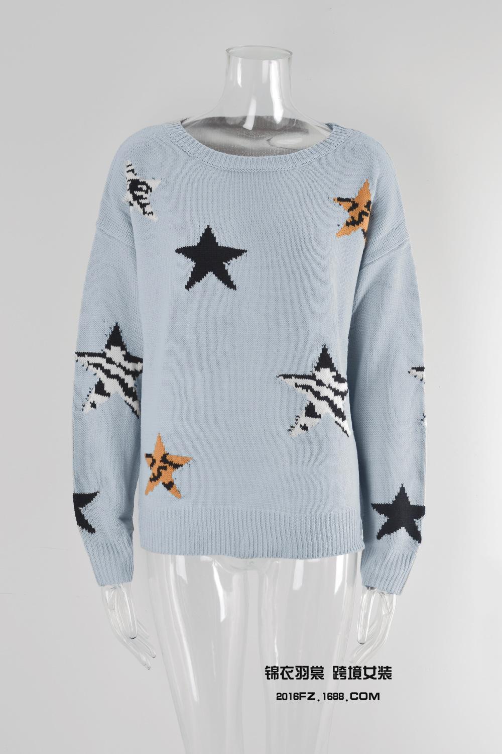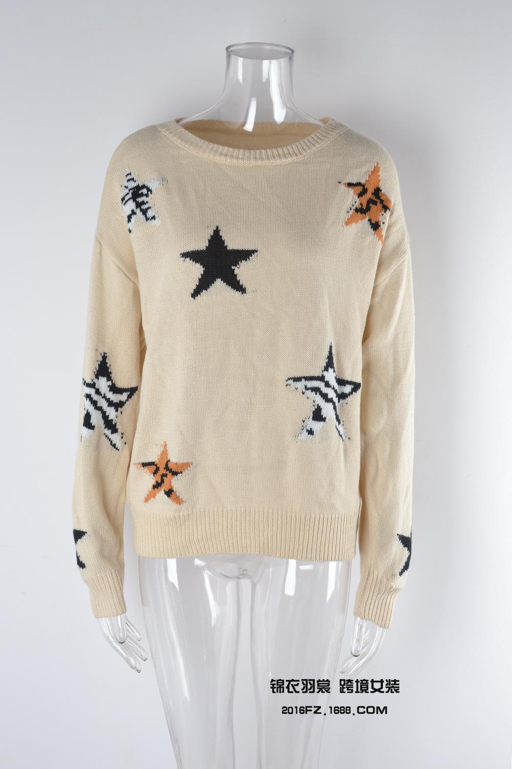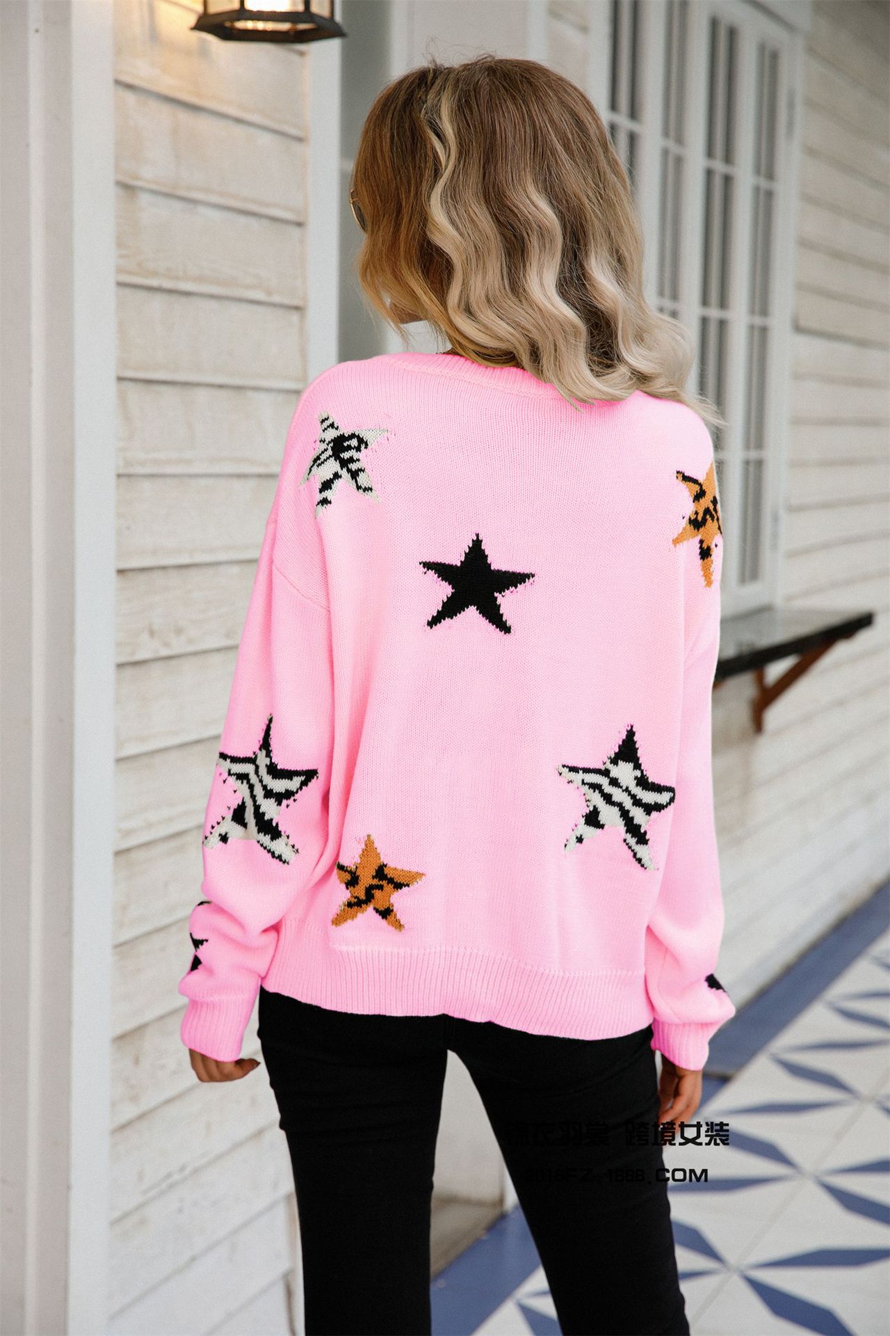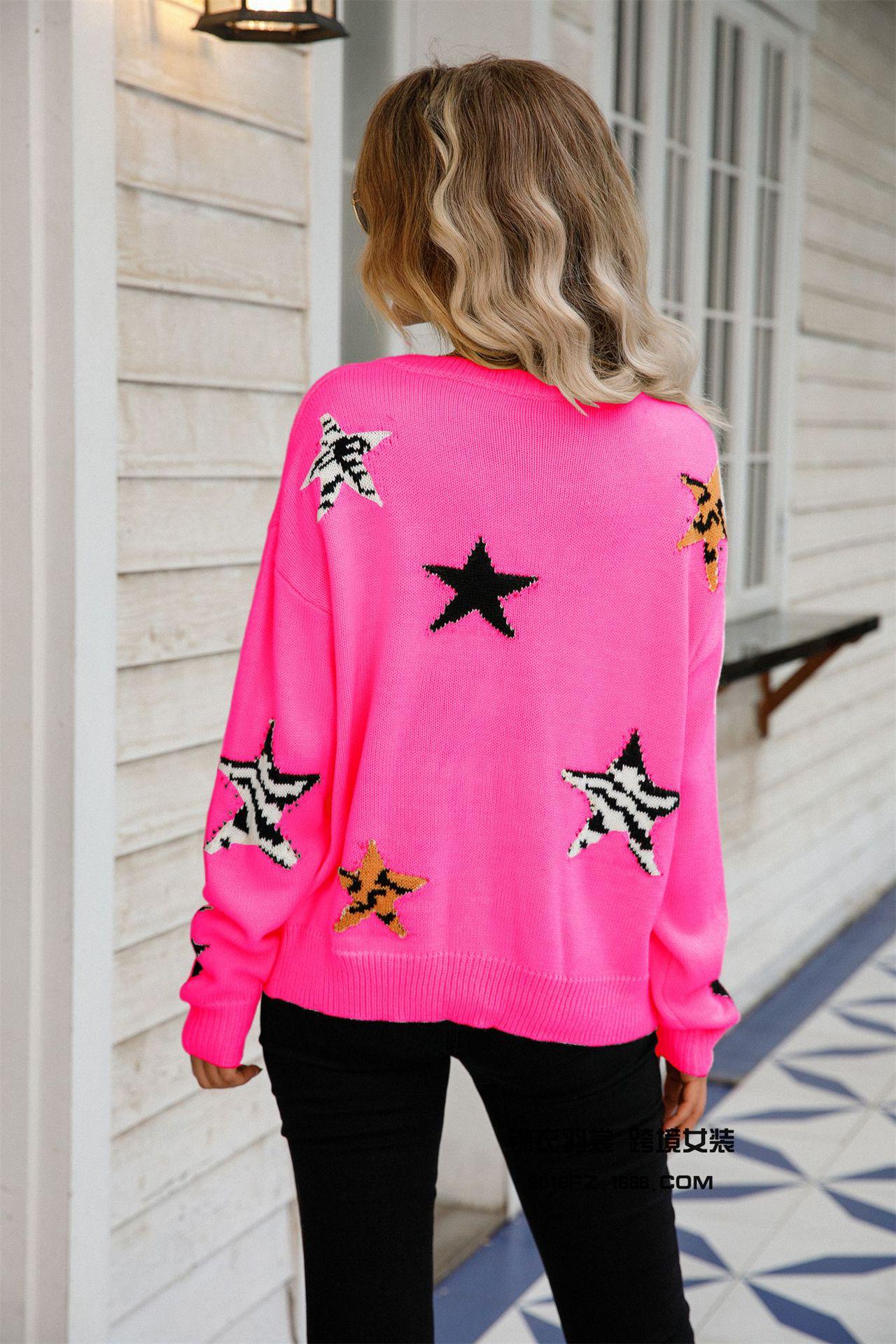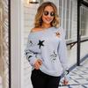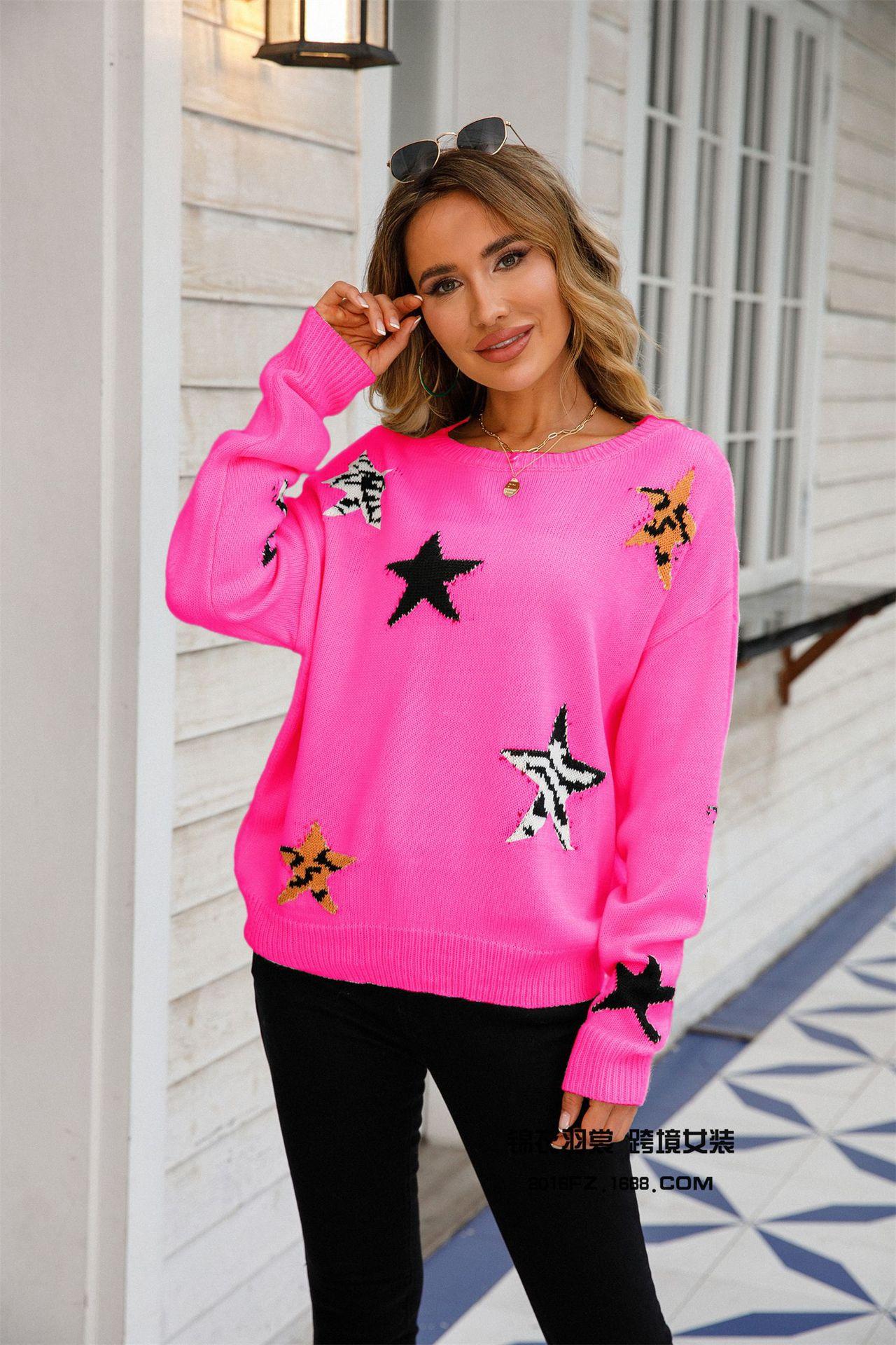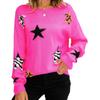 2025 Exportación Europea y Americana Amazon Popular Tejido de Punto Cuello Redondo Estrella Manga Larga Transfronterizo Jersey de Punto para Mujer