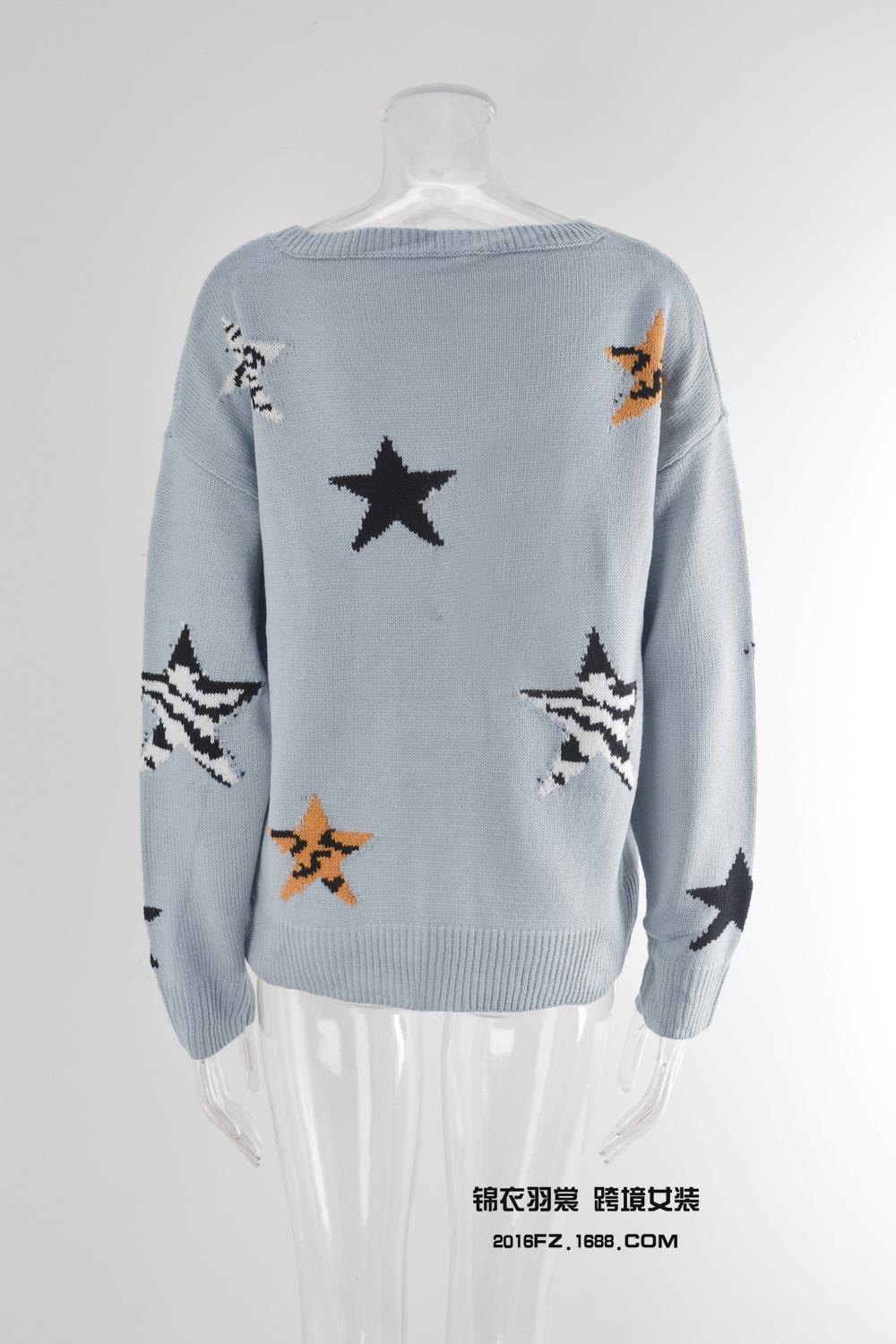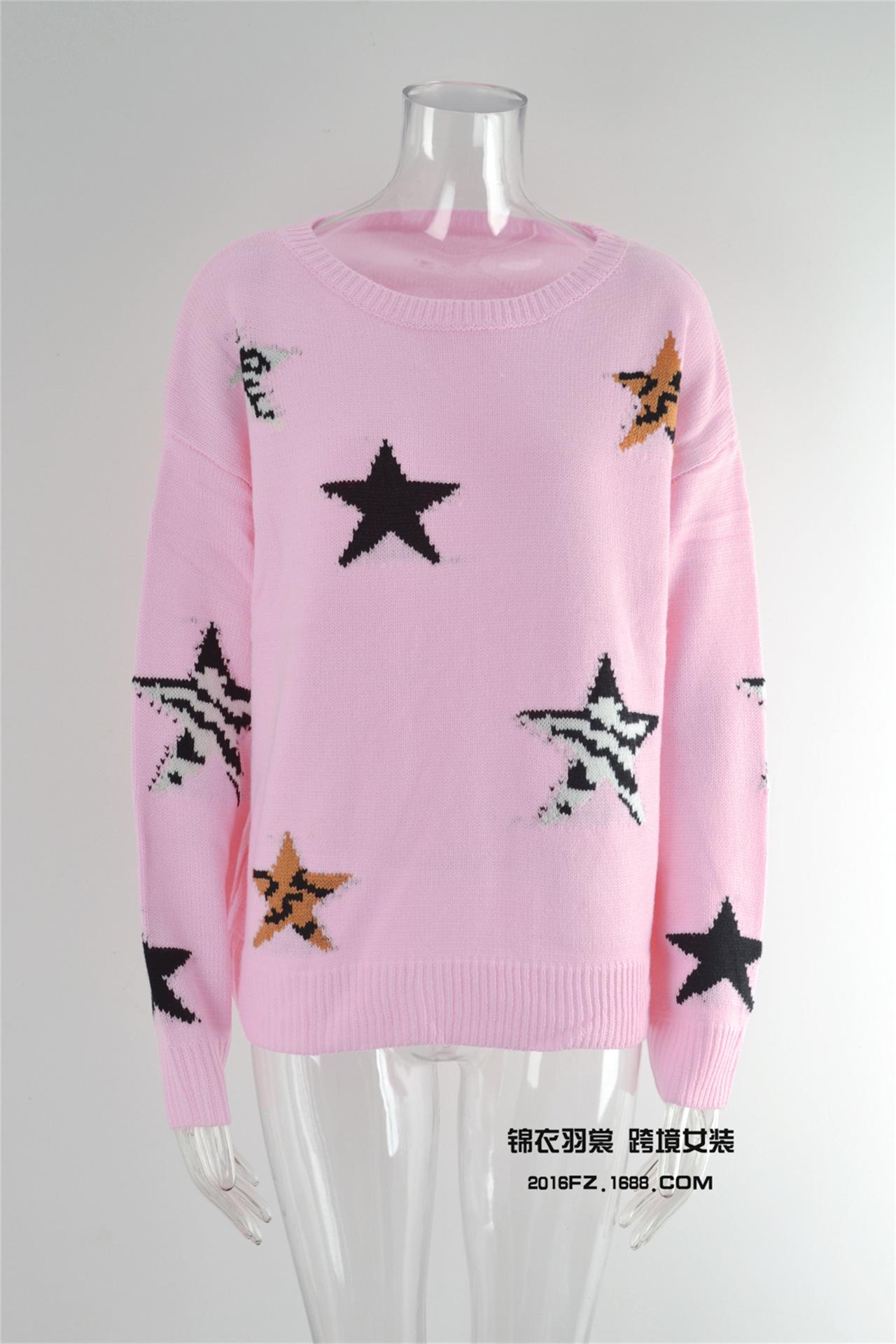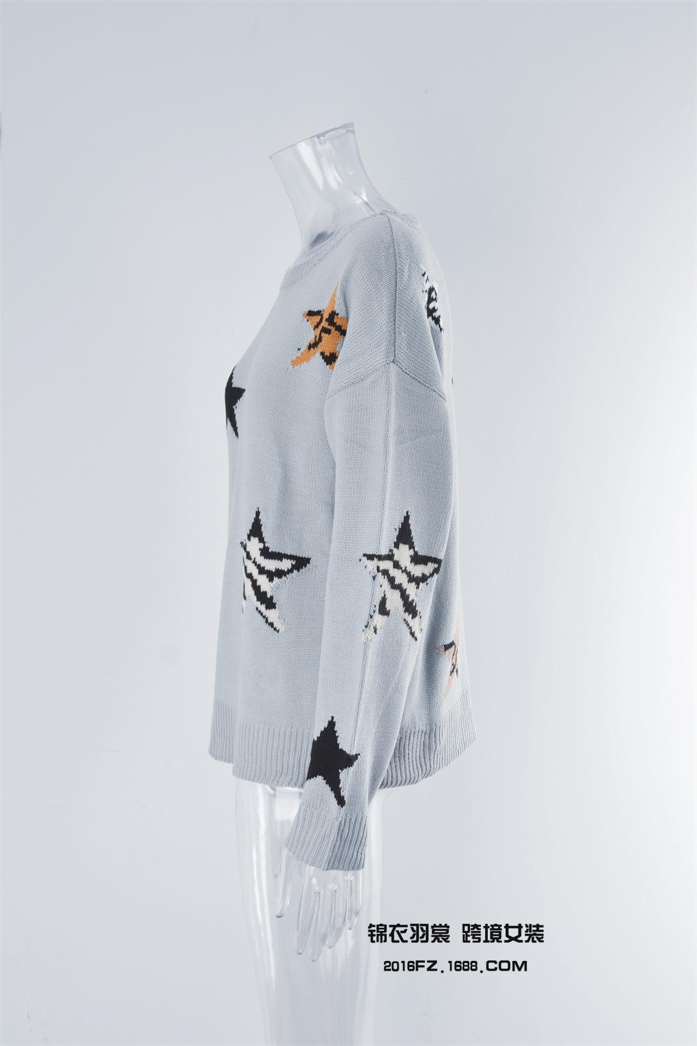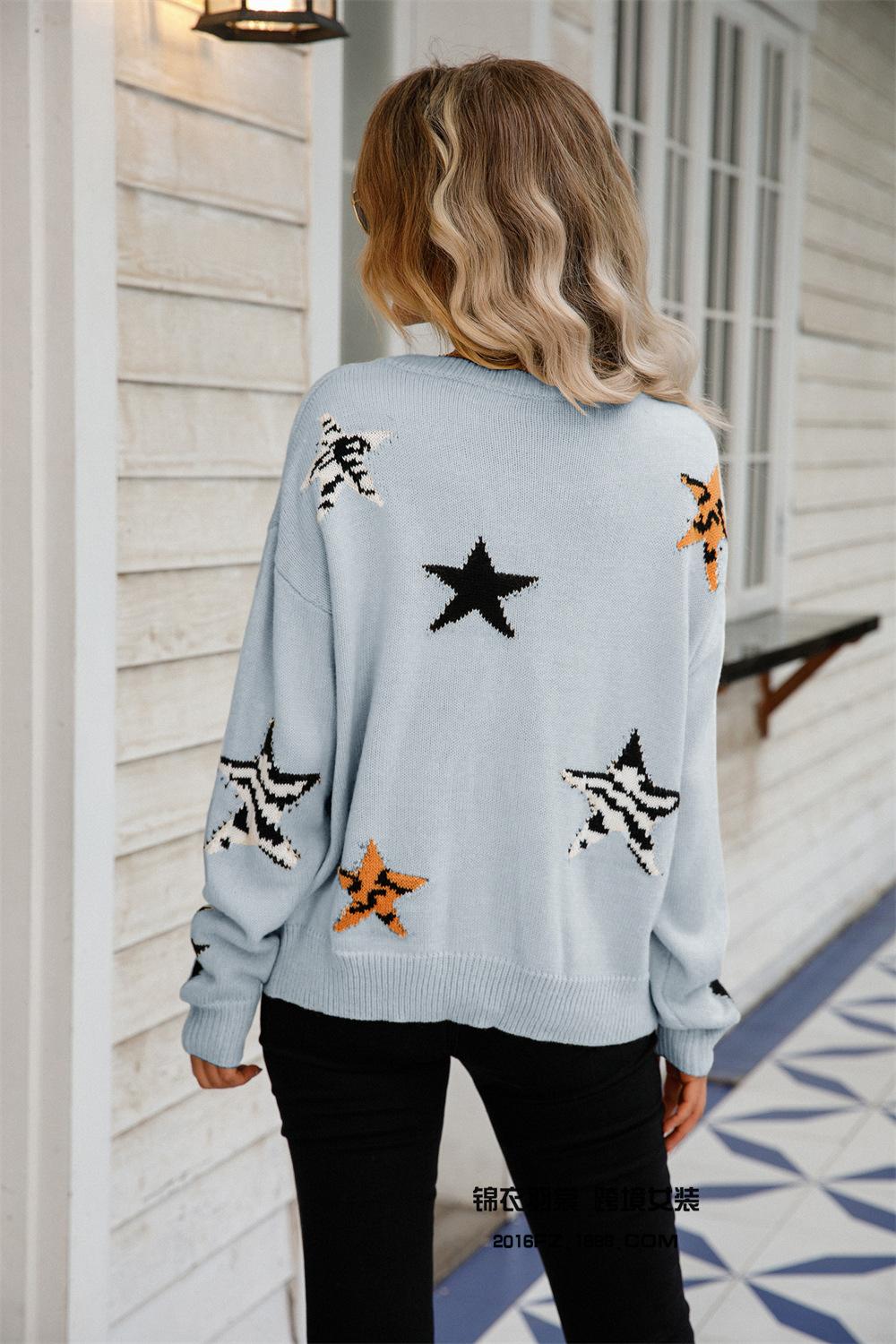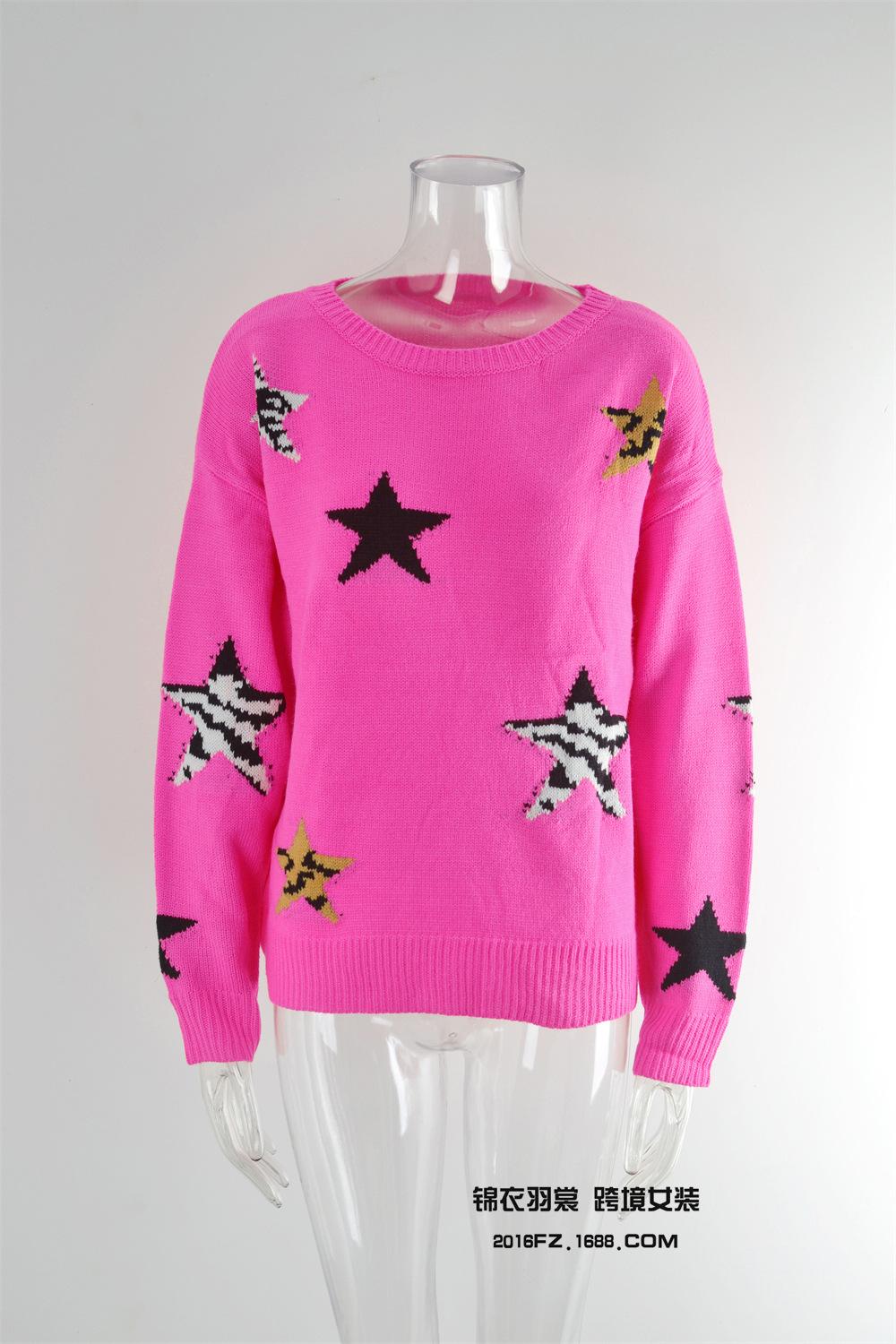 2025 Exportación Europea y Americana Amazon Popular Tejido de Punto Cuello Redondo Estrella Manga Larga Transfronterizo Jersey de Punto para Mujer
