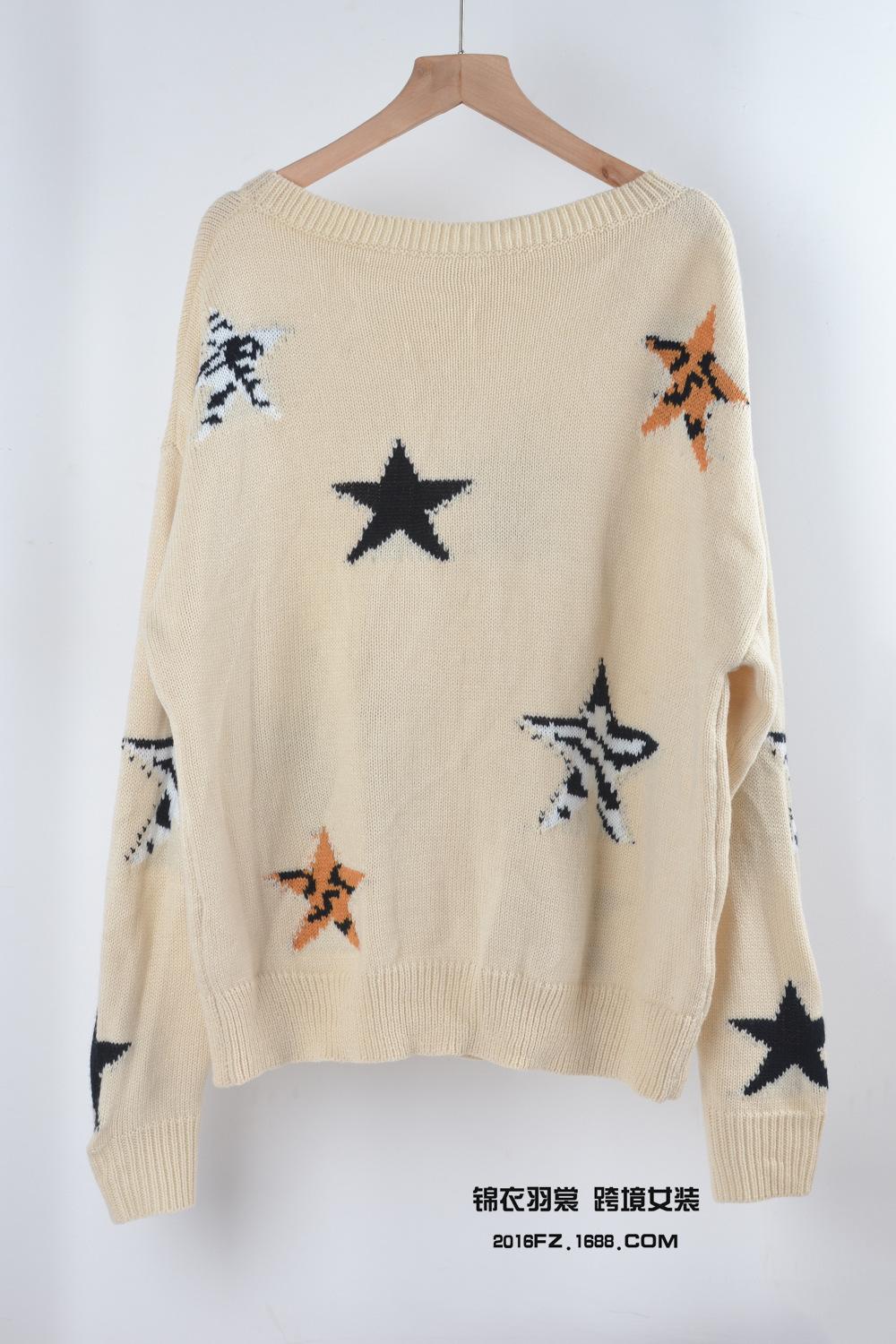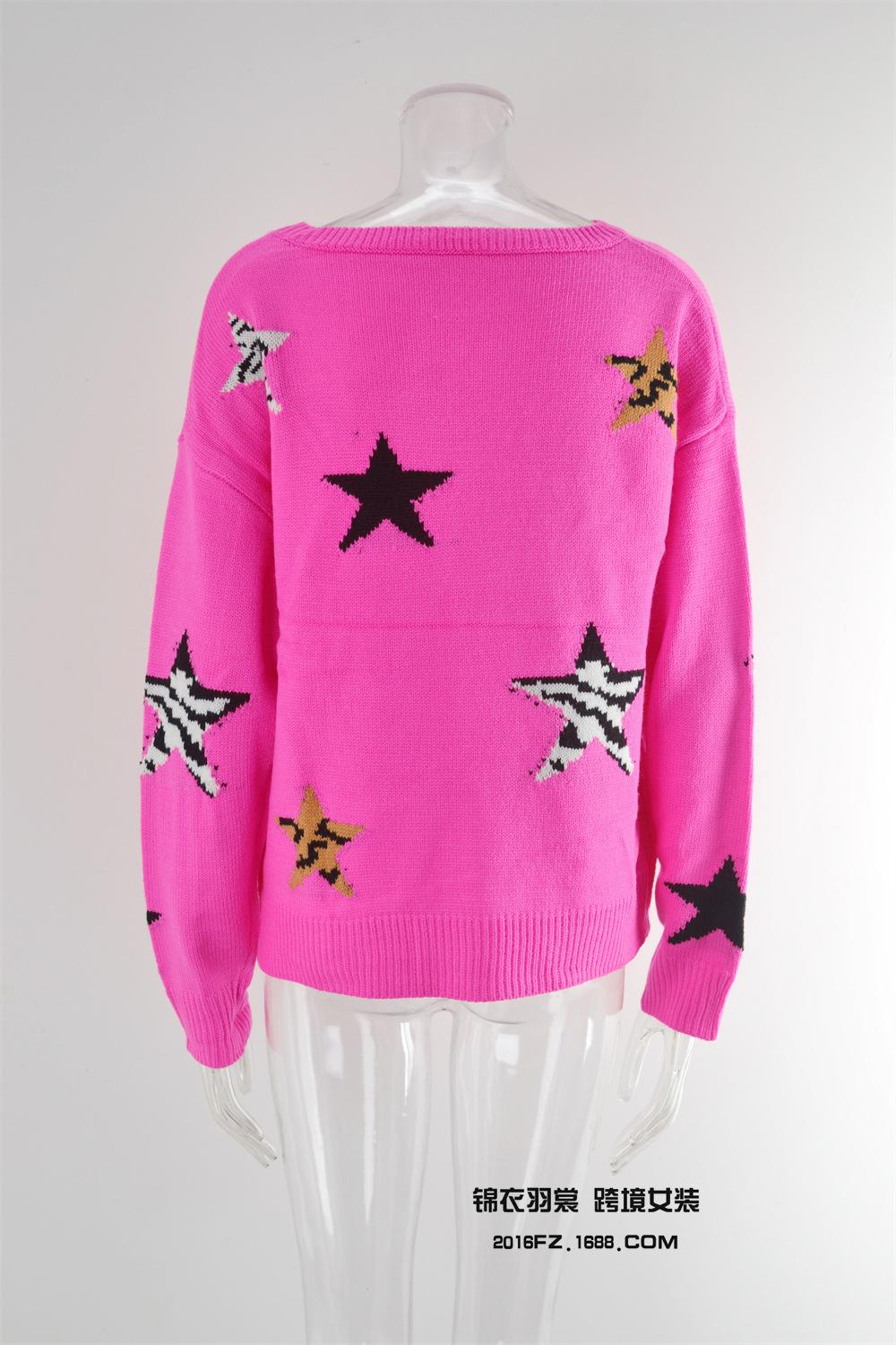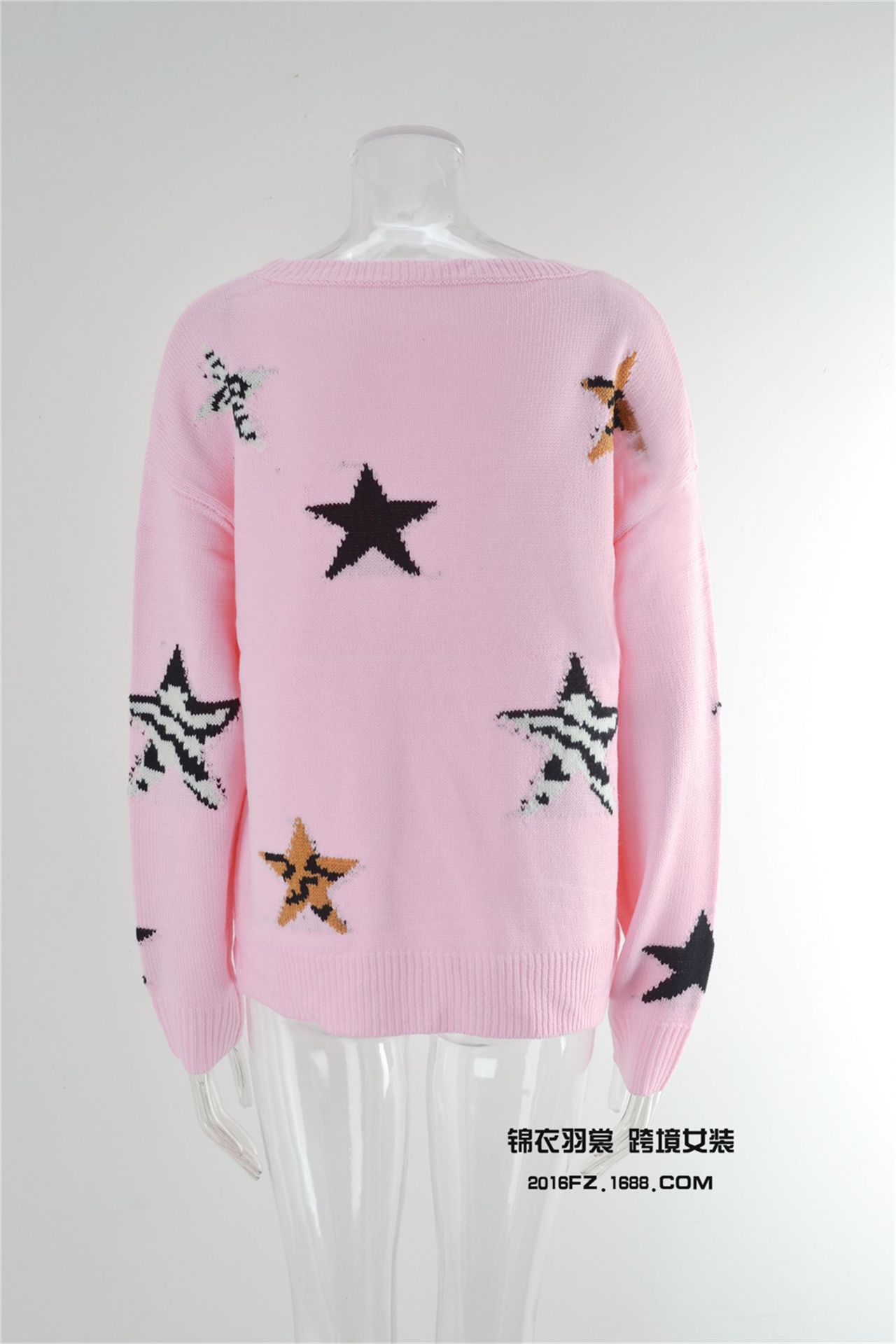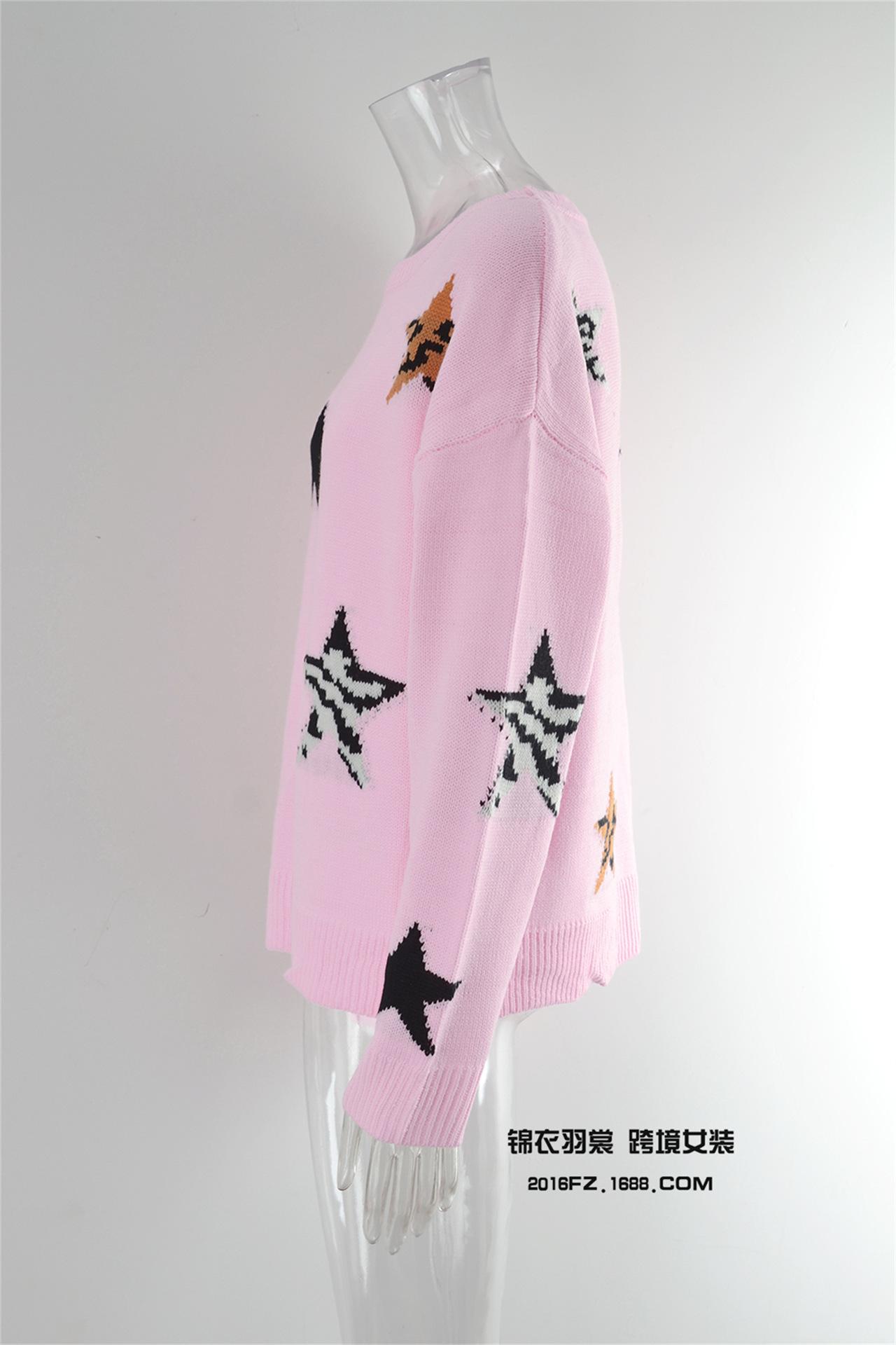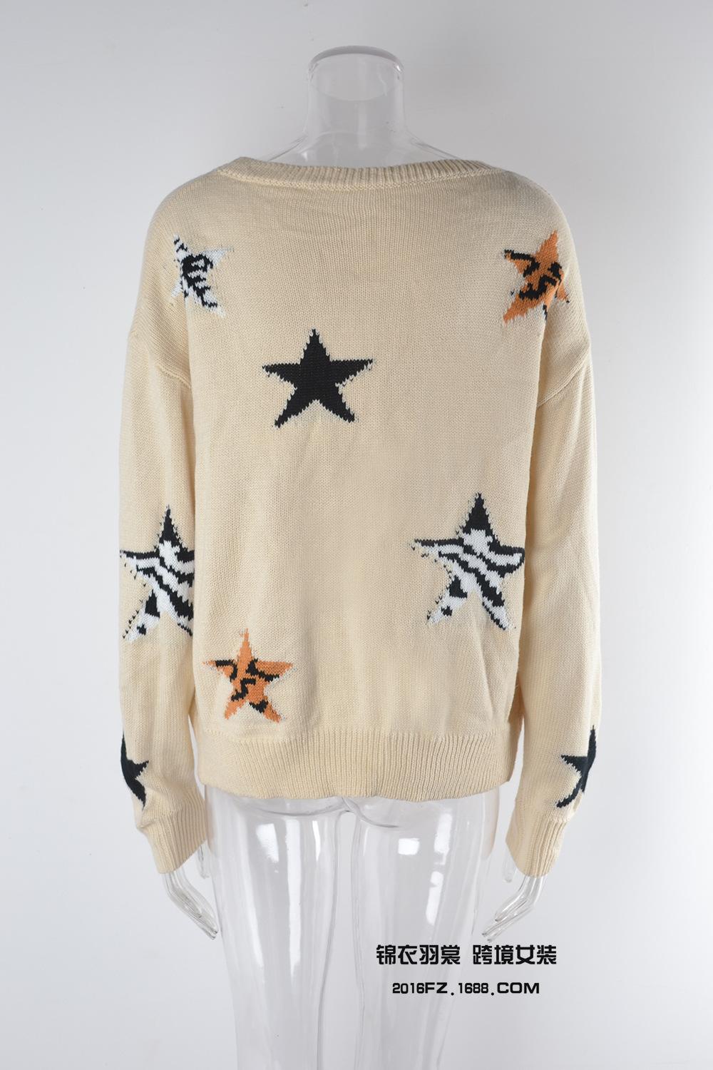 2025 Exportación Europea y Americana Amazon Popular Tejido de Punto Cuello Redondo Estrella Manga Larga Transfronterizo Jersey de Punto para Mujer