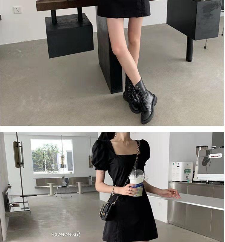 Falda francesa con cuello cuadrado y mangas abullonadas para mujer, verano 2025, nueva, adelgazante, suave.