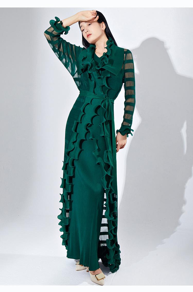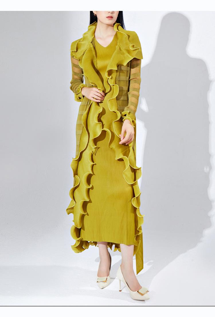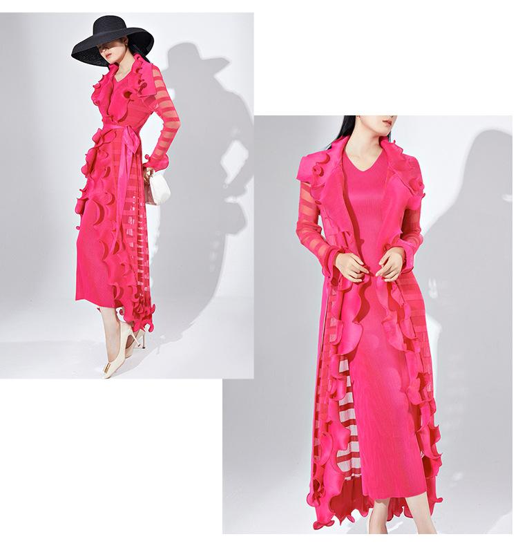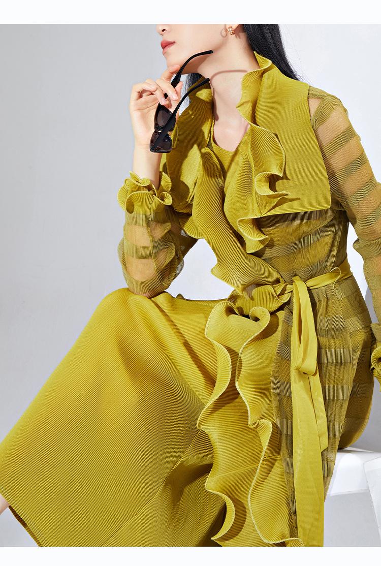 Ropa de mujer popular de comercio exterior transfronterizo chaleco falda abrigo trench con cordones conjunto de dos piezas vestido largo plisado de alta calidad