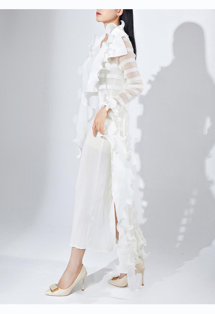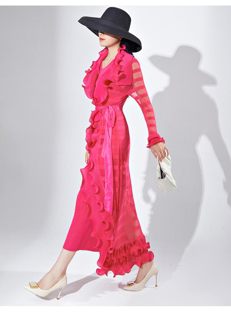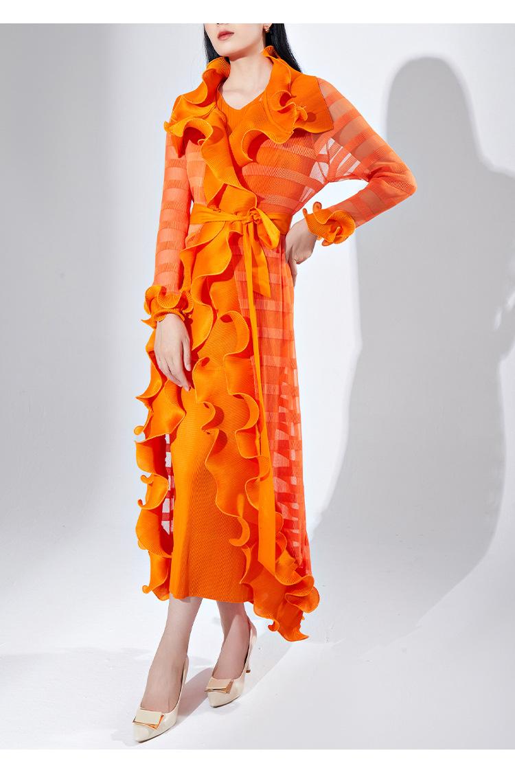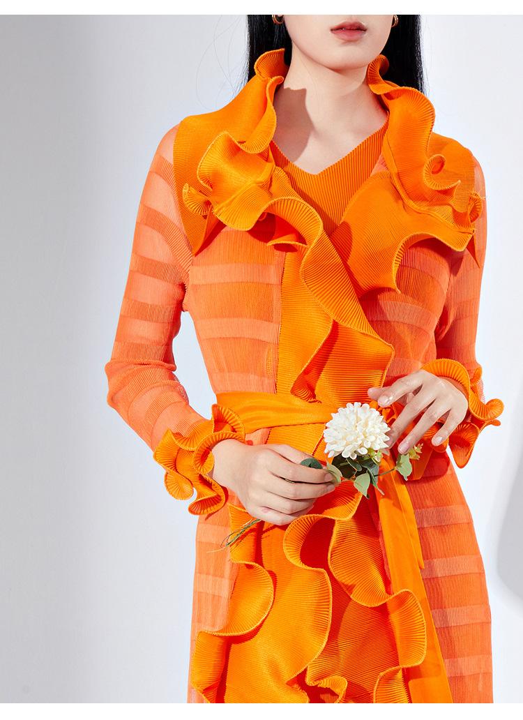Ropa de mujer popular de comercio exterior transfronterizo chaleco falda abrigo trench con cordones conjunto de dos piezas vestido largo plisado de alta calidad