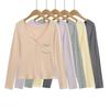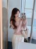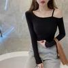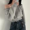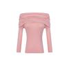 Top de camisa básica de manga larga con hombros descubiertos para mujer Otoño rosa estilo suave suéter corto ajustado de cuello interior para mujer